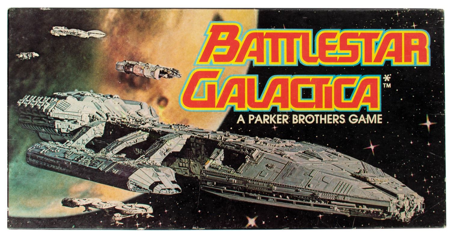 (Parkers Brothers, 1978) A rare board game based on the sci-fi television series, Battlestar Galactica. You play as a Colonial Viper pilot assigned to capture a disabled Cylon Raider and tow it to the Battlestar Galactica. The game includes (36) command cards, (12) Evasive Action Cards, a game board, and (2) ship player tokens. The game is missing a few pieces and the spinner. The box measures 9.5"x18.25" and 1.5" thick, the game is in good condition with some shelf wear to the box.
