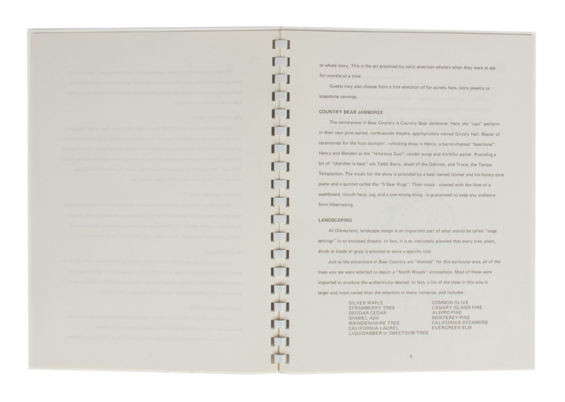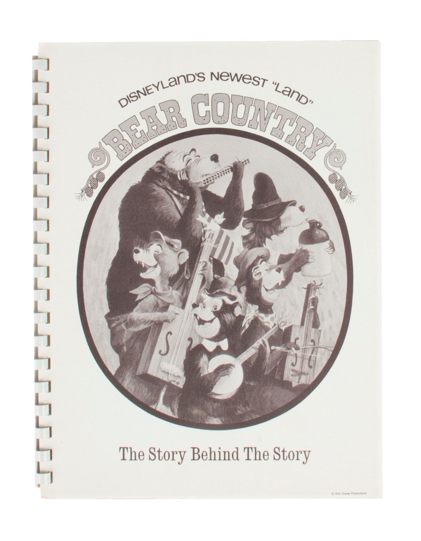 (Disneyland, 1972) A very rare cast member manual for Bear Country at Disneyland. Bear Country, and it's main attraction "Country Bear Jamboree", opened in Disneyland in 1972 after the success of the attraction at Walt Disney World. This manual was created to familiarize cast members working the Bear Country area with the new show as well as features of Disneyland's newest land. The 14-page manual measures 11.25"x8.5" and is in very good condition with minor wear.