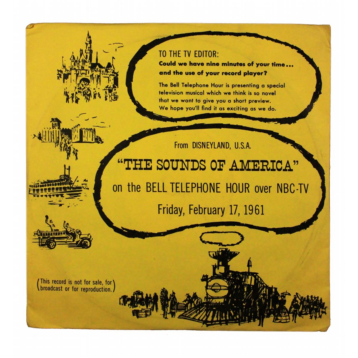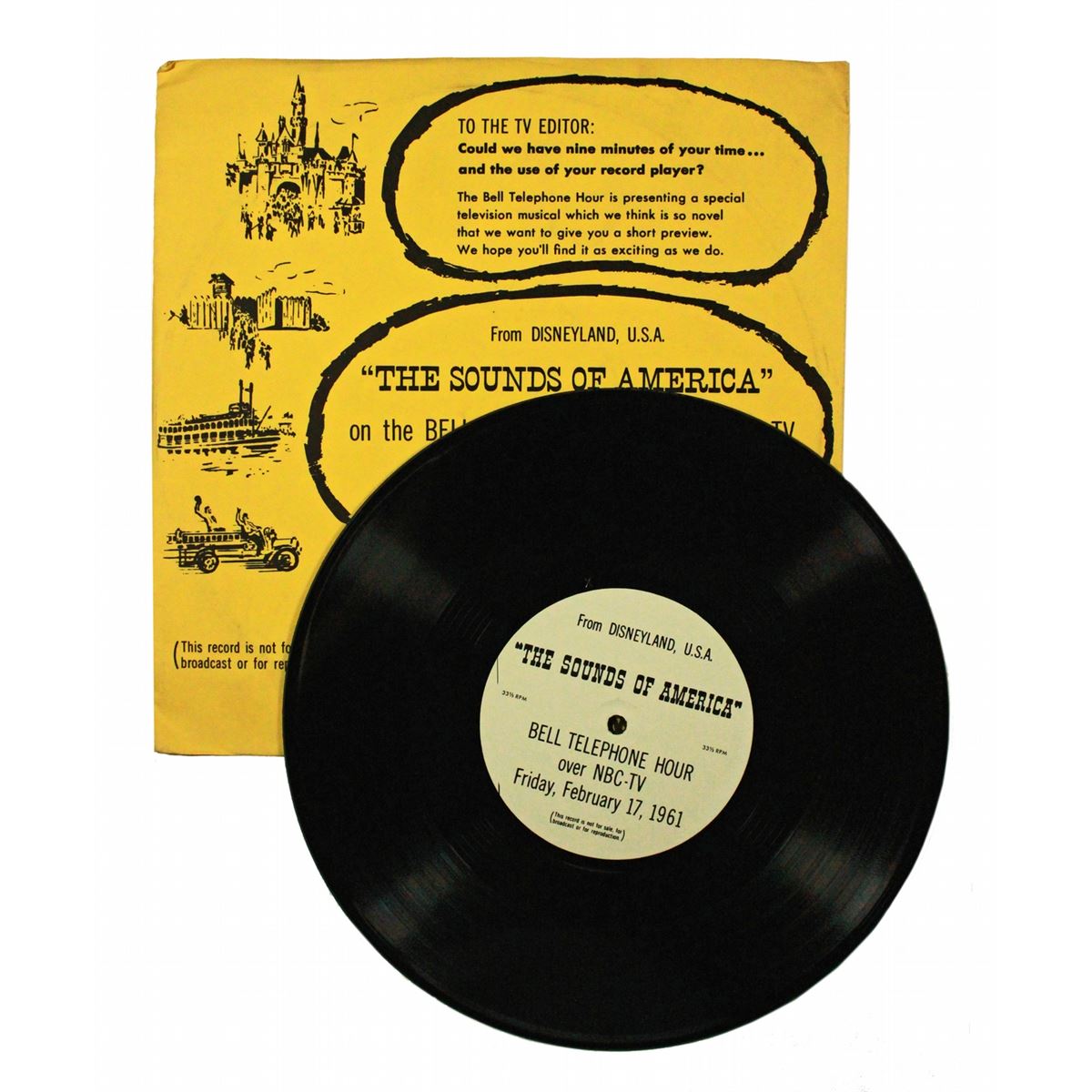 (Disneyland, 1961)Airing Friday, February 17th, 1961, the Bell Telephone Hour presented an original musical TV show shot entirely on location in Disneyland, USA. This event was heavily promoted by NBC. This rare 33 1/3 album teases at the subject of this highly anticipated special. In very good condition.