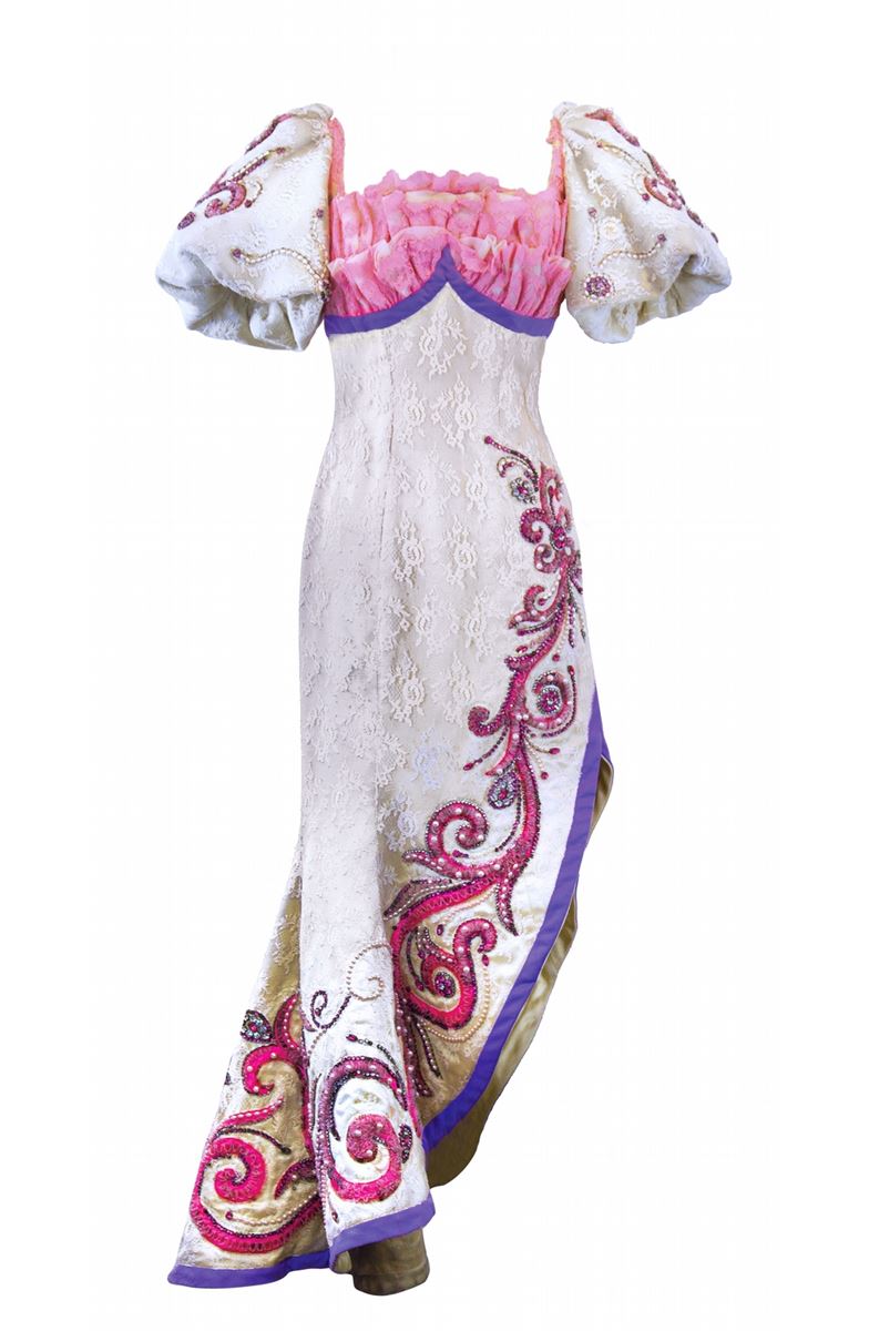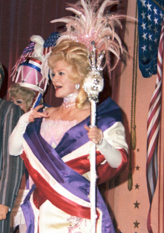 A strikingly elaborate stage costume for Betty Taylor as “Slue Foot Sue.” Includes matching choker and shoes from her dressing room. In very good condition with some wear from age.