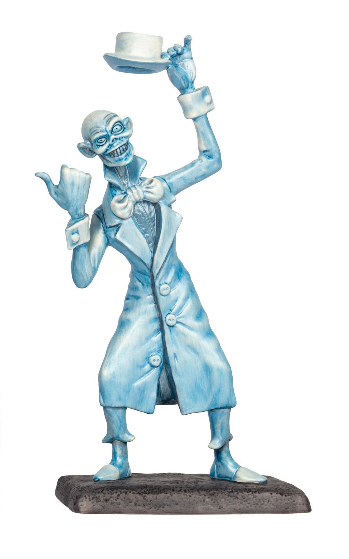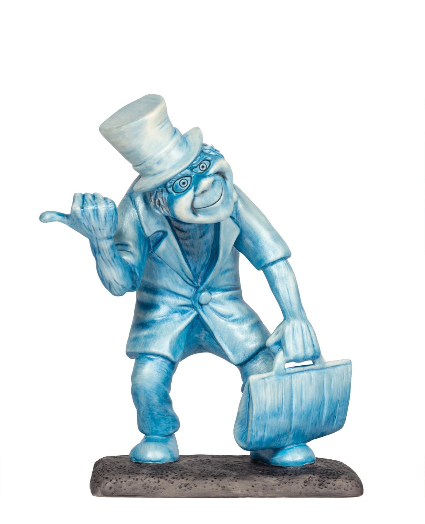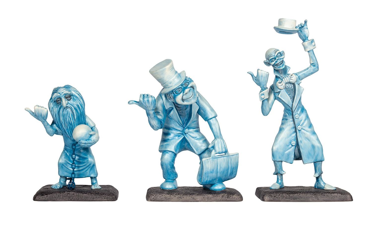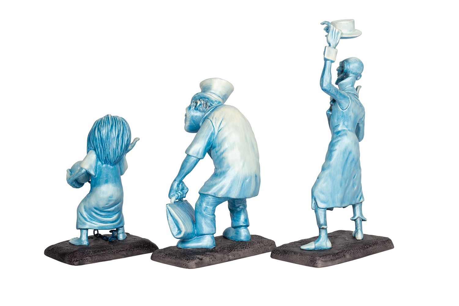 (Disneyland, 1999) An extremely rare set of Walt Disney Classics Collection figures that depict the iconic Hitchhiking Ghosts from the Haunted Mansion. These hand-painted ceramic figures are part of a limited edition set, with each figure hand-numbered on the base as 1166/1500. The figures range in size from 5" to 8.25" tall, and the condition is very fine overall. The original box and hand-numbered Certificate of Authenticity are included.