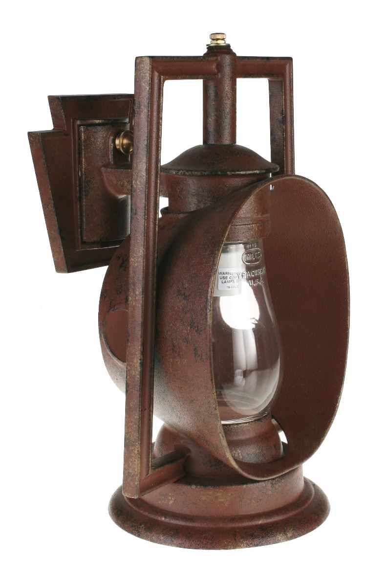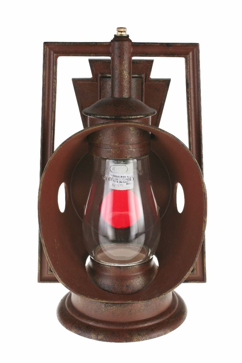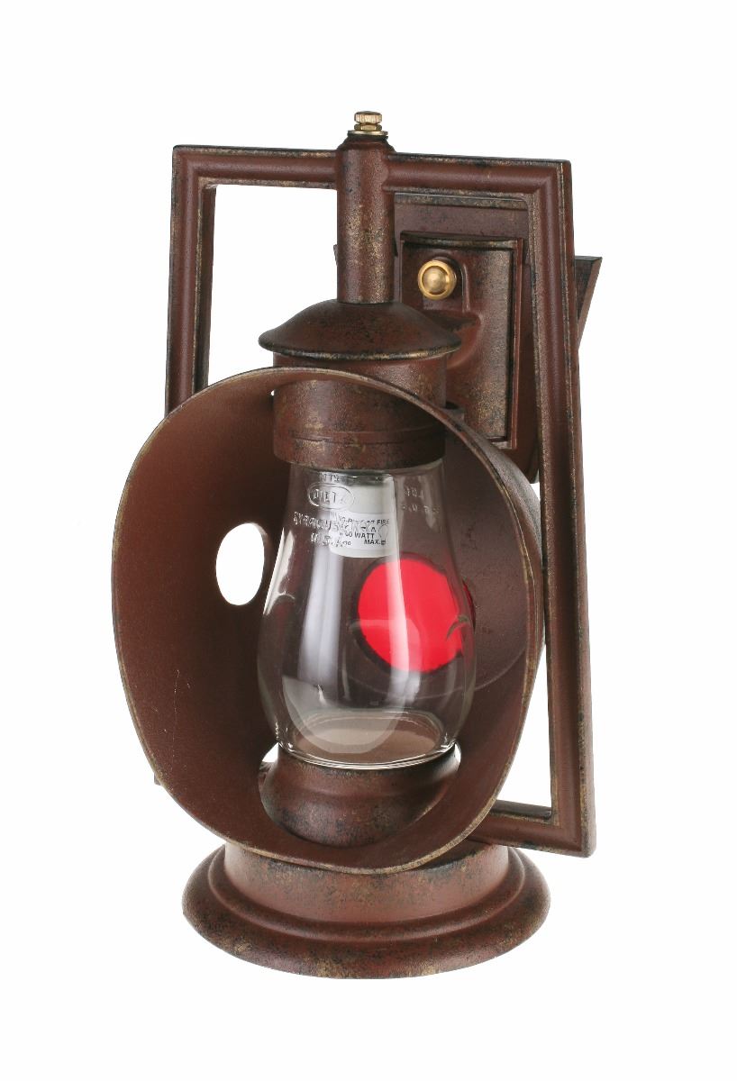 (Disneyland, 1980s) Western style lantern used in the queue and preshow area of the "Big Thunder Mountain Railroad" attraction. The metal and glass lantern was removed during refurbishment of the ride in 2013. Measures 5.5"x5.5"x13". In very good condition with expected wear from exposure and use.