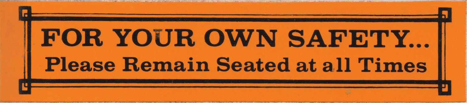 (Disneyland, c.1980s) A rare safety decal from Big Thunder Mountain at Disneyland. The decal features safety instructions and is unused on its original backing. Measuring 1.75"x8", the decal is in very good condition with some color wear the ink on the front, and some yellowing on the reverse from age.