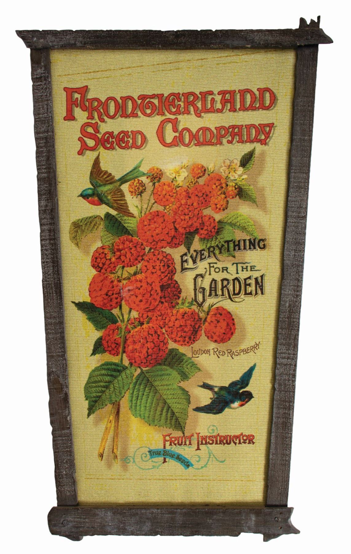 (Disneyland, c.2010s) A prop sign used as decoration at Big Thunder Ranch for the spring season. The sign is a faux advertisement for "Frontierland Seed Company" and hung inside the entrance of the popular ranch-style area. Measuring 34.5"x23.25", the sign is in good used condition with expected edge-wear.