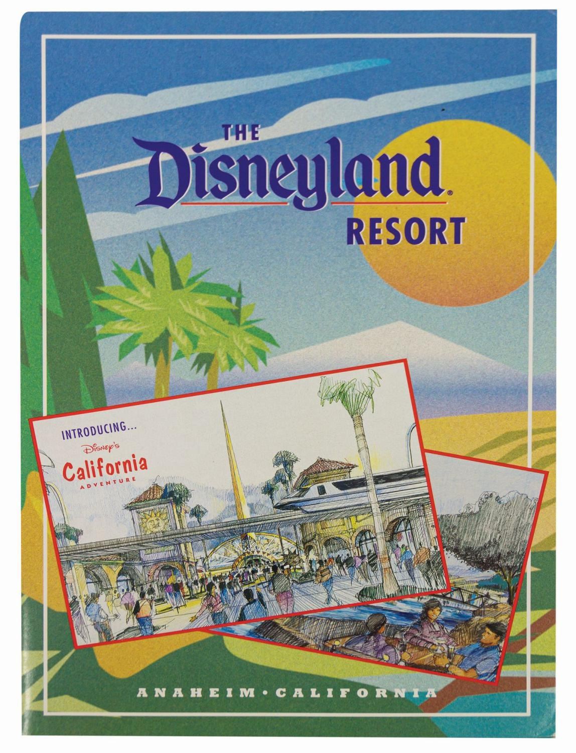 (California Adventure, c.1997) A rare brochure created by Disney to announce their California Adventure theme park and the Disneyland Resort expansion in downtown Anaheim. The six-page color brochure features a map of the proposed resort complex and concept artwork of the new park, the Grand Californian Hotel, planned attractions, and improvements to the surrounding area. Measuring 12"x8", the brochure is in very good condition with some corner creasing and handling wear.