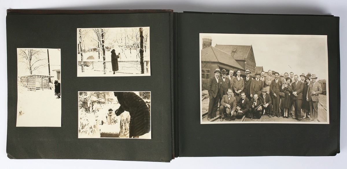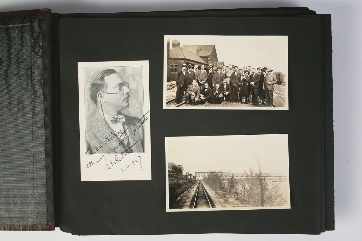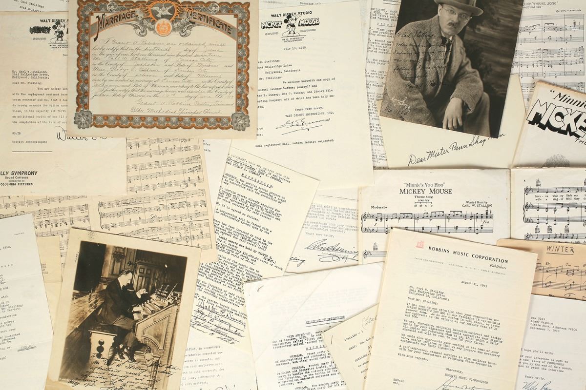 (c. 1922-1930) Incredible personal photo scrapbook belonging to Carl Stalling, containing numerous family and personal photos. Also included is Stalling's annotated interview for a 1970's magazine article about his history with Disney, as well as a signed photo, numerous copies of Disney contracts, one original signed contract, and photos of Disney and Ub Iwerks. An incredible archive.