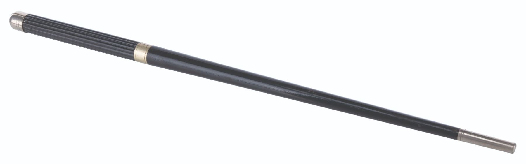 (Stalling, 1930s) Carl Stalling’s personal conductor’s baton. Stalling, who is best known for composing and orchestrating the scores which defined the soundtrack of Warner Bros. animation, used this baton to conduct the Warner Bros. orchestra throughout his career spanning over 600 cartoons. The baton was gifted to Clampett by Stalling’s widow. Constructed of wood with metal caps and ring and measuring 15.75”, the baton is in very good condition with light scratches and scuffs.
