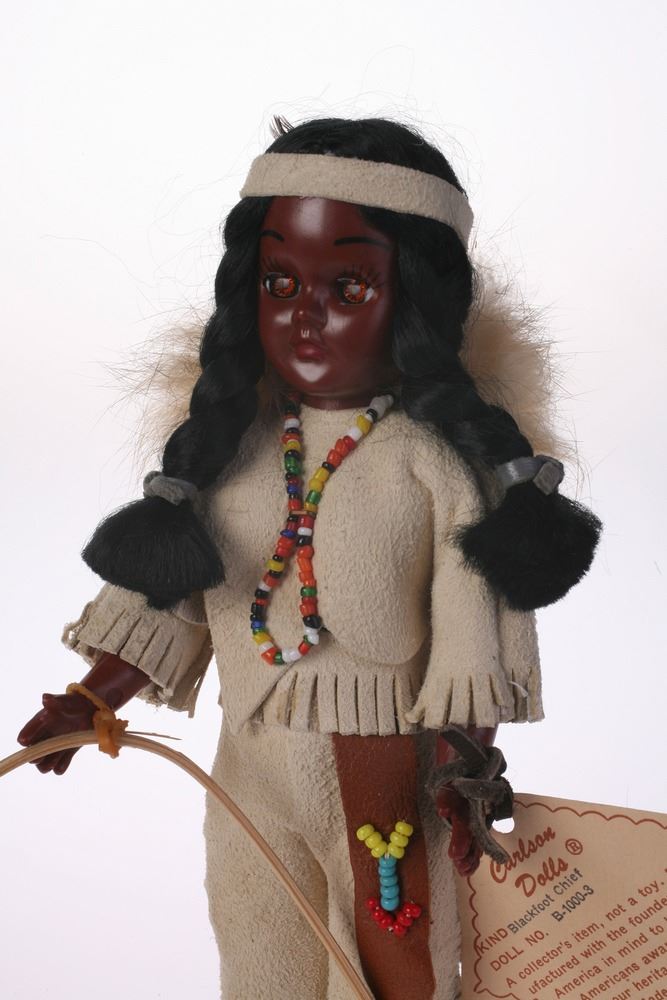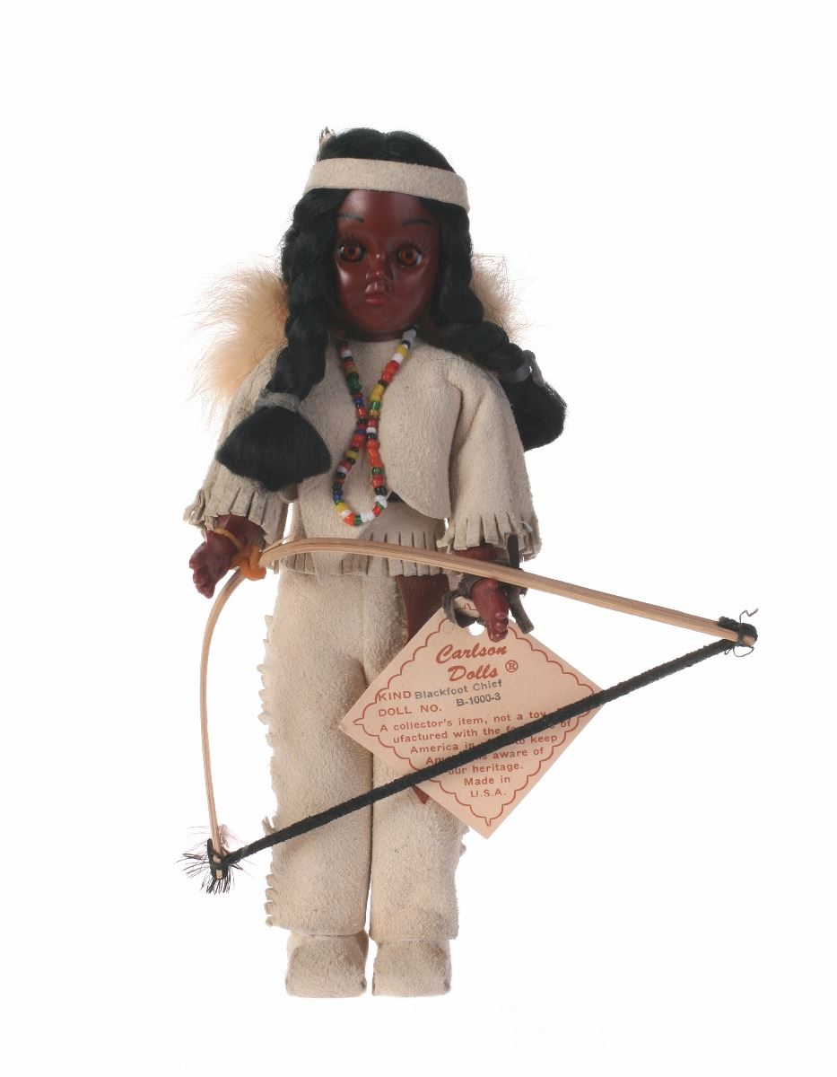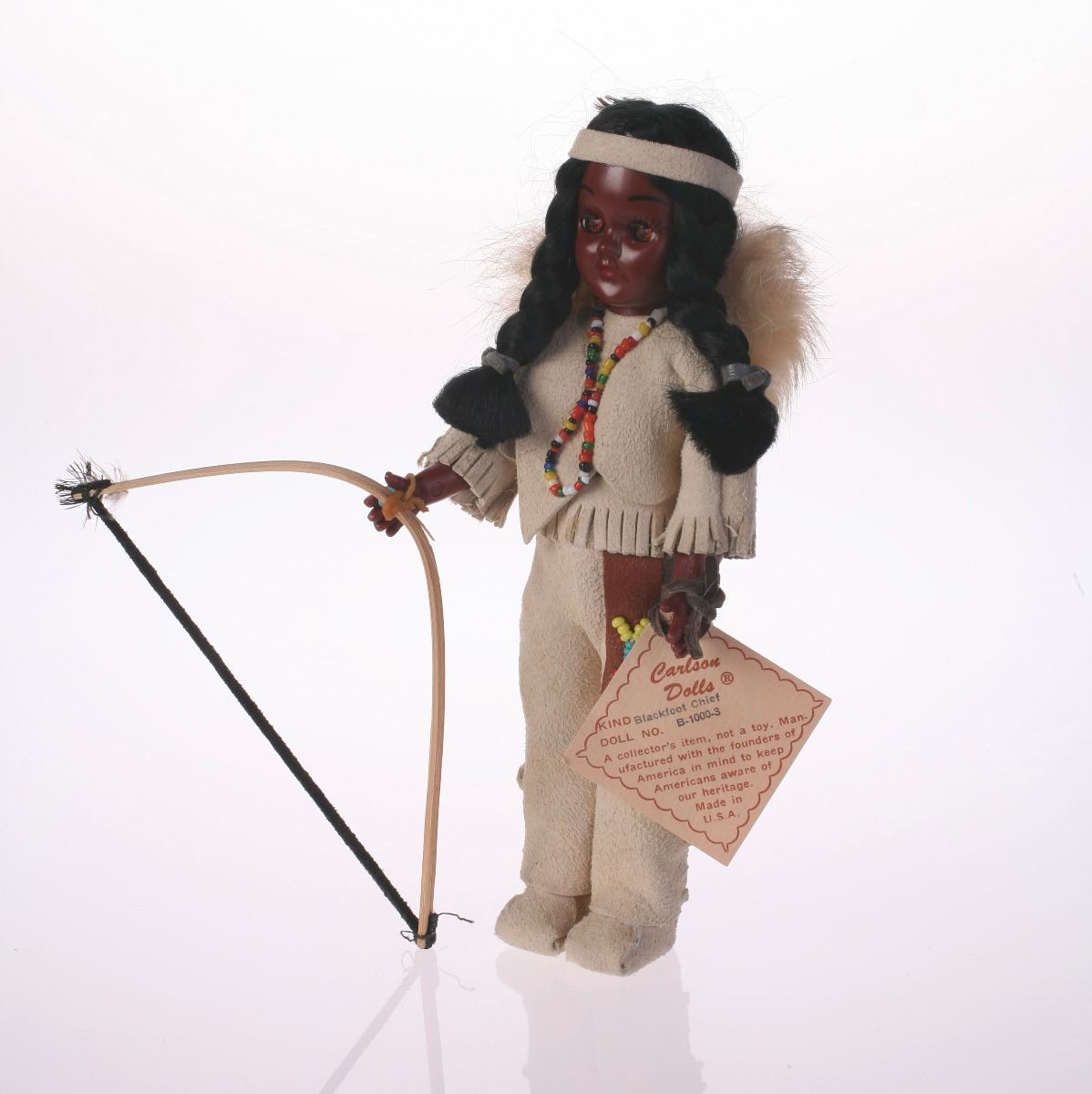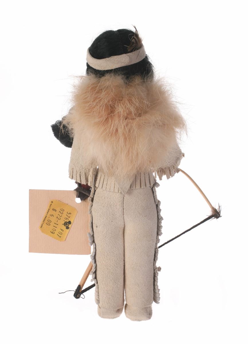(Disneyland, 1950s) Advertised as "a collector's item, not a toy", this doll was manufactured by Carlson Dolls, a Minnesota company founded in 1946, and known for authentic high-quality dolls. This particular doll has moving head and arms and "sleeping eyes" as well as a bow accessory. Comes with its original Carlson Dolls tag and Disneyland sales sticker. Measures 2.75"x2" and 7.25" tall. In good condition.