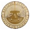 (California Adventure, 2012) A park-used Radiator Springs Chamber of Commerce sign from Cars Land in Disney California Adventure. The printed paper and PVC board sign features the fictional town's Chamber of Commerce logo with intentional distressing to appear aged and weathered. This piece hung alongside other civic emblems under the "Welcome to Radiator Springs" entry sign. The reverse is equipped with velcro pads for hanging. Measuring 18.5" in diameter, the sign is in good condition with a 4" strip at the bottom of the circle reattached with gaffer tape to the reverse, edge chipping, and general surface wear from outdoor use.