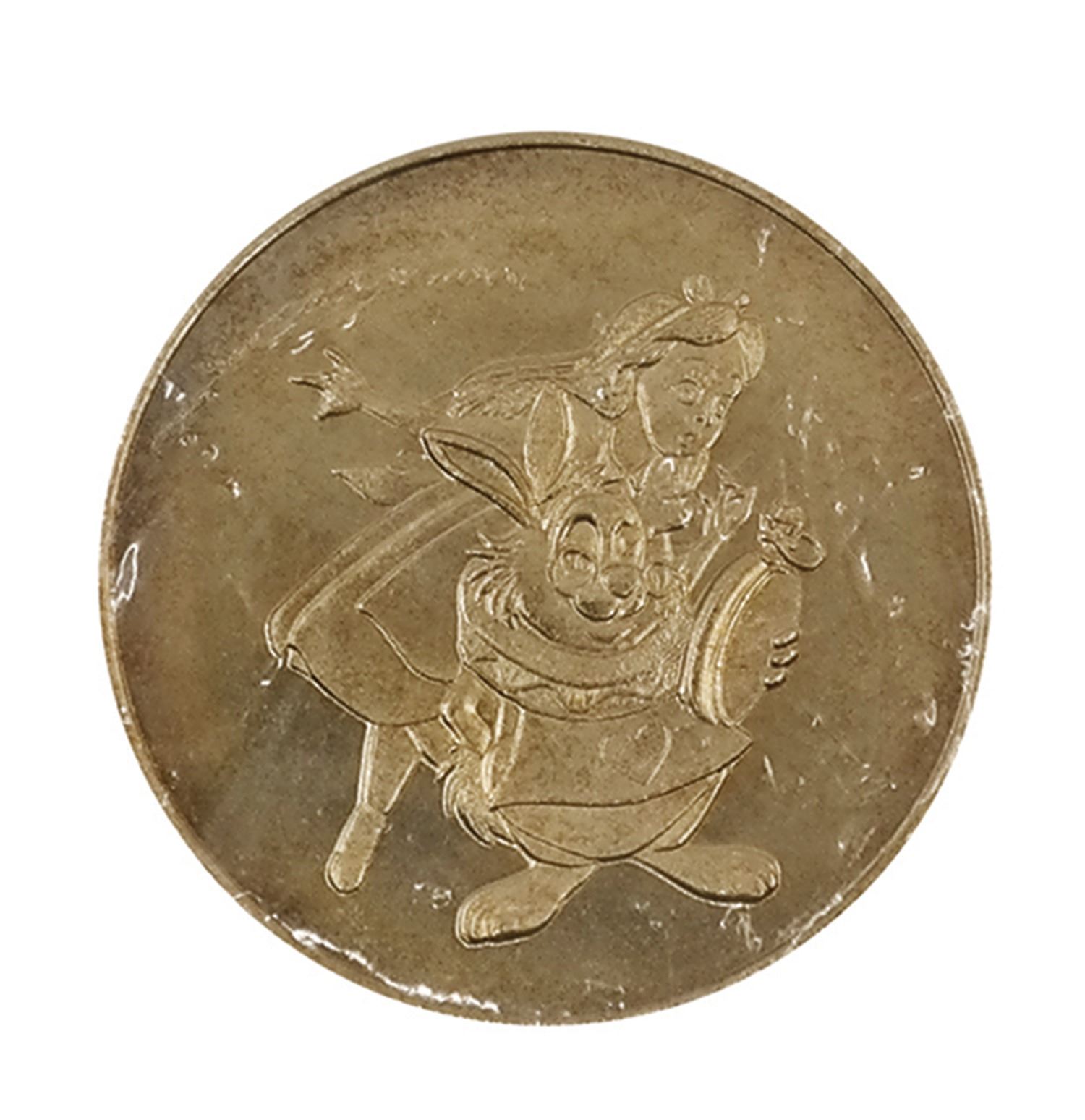 (Disneyland, 1994) A very rare perfect attendance coin awarded to a Disneyland cast member for the year 1994. The metal coin has not been opened from its original plastic wrap, and comes in its original pouch. Measuring 1.5" in diameter, the coin is in very fine condition.