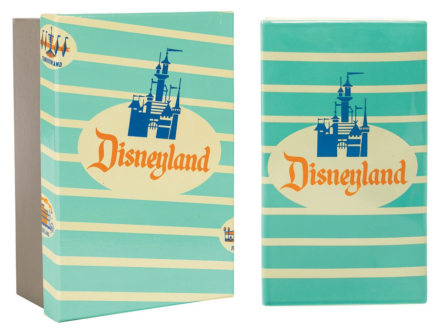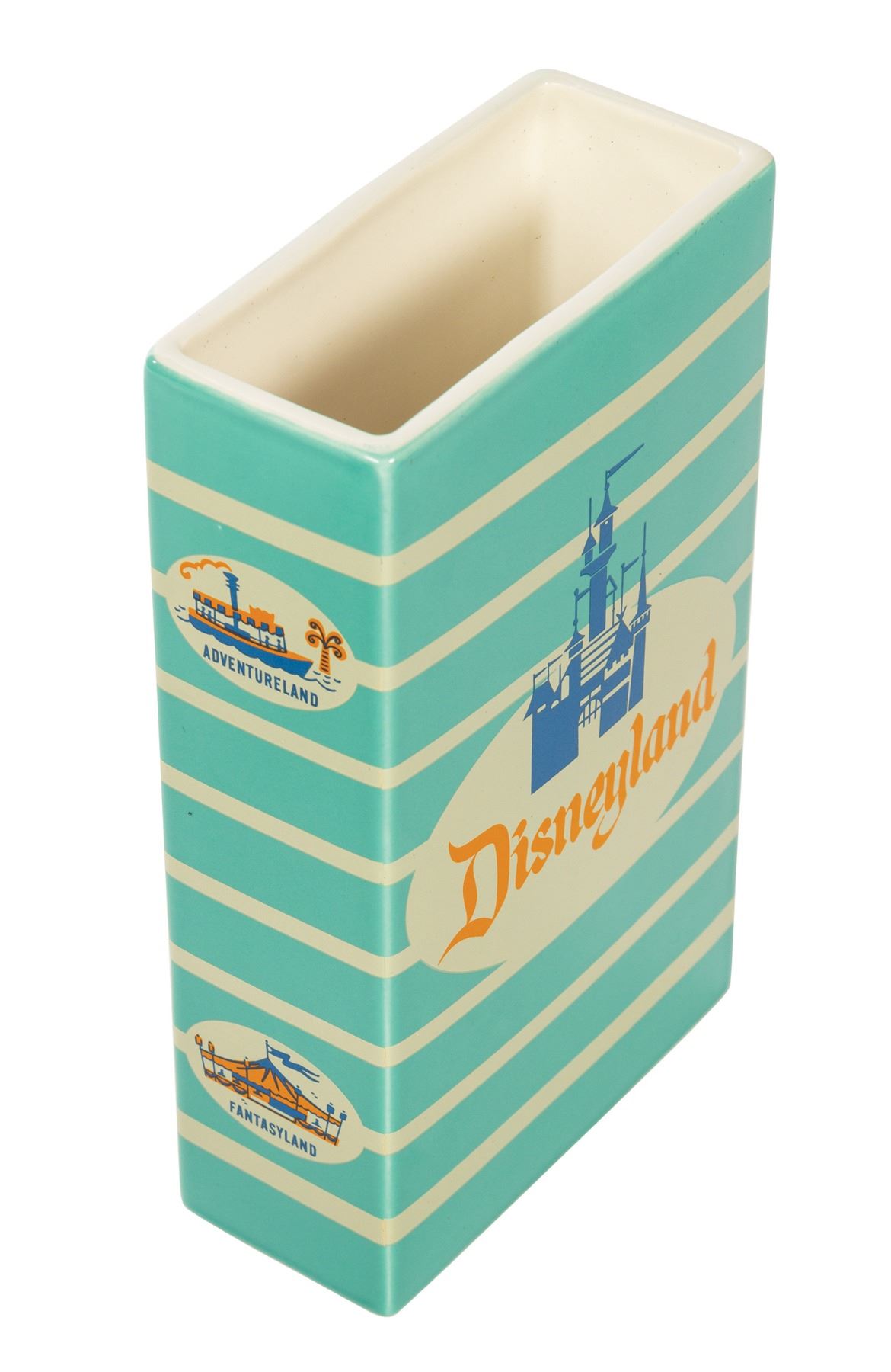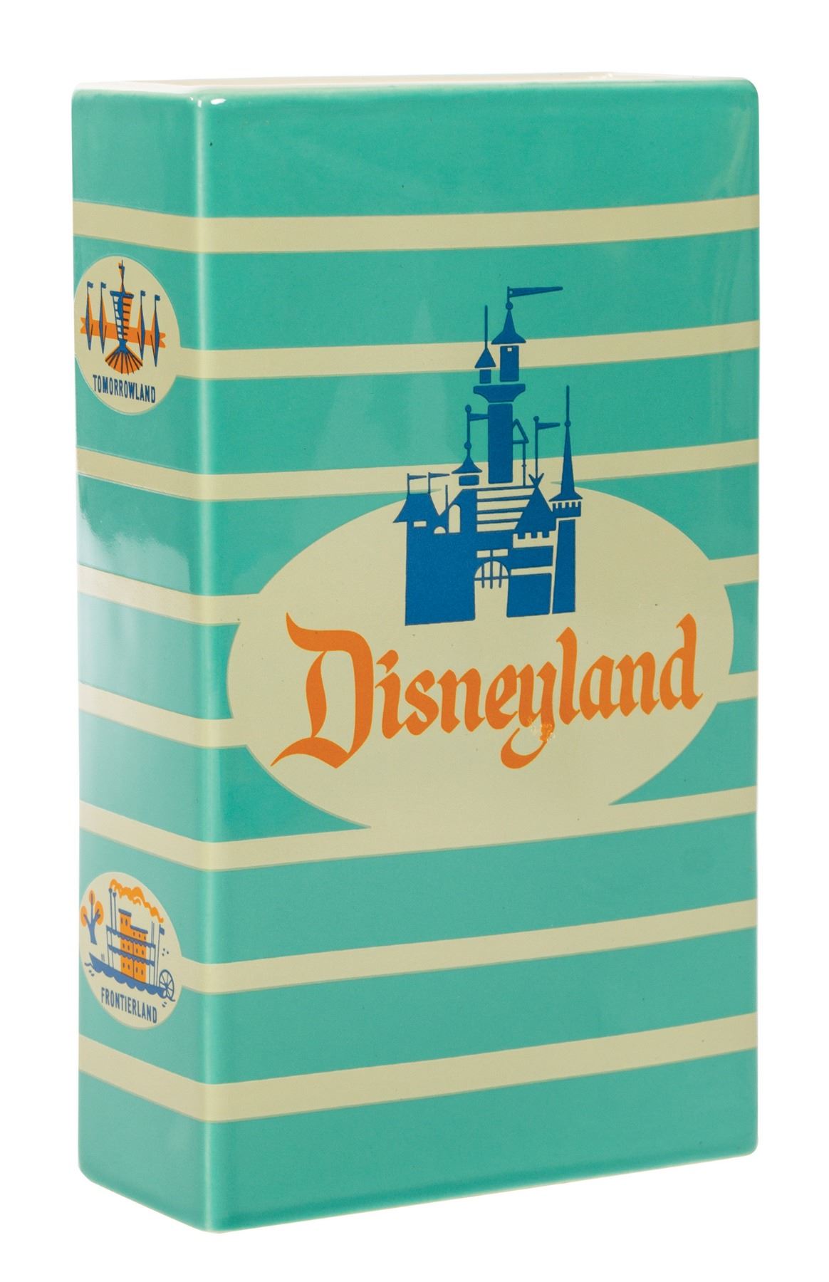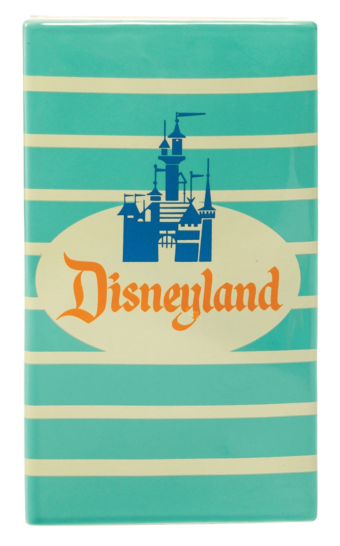 (Disneyland, 2010) A ceramic limited edition popcorn box created by Kevin Kidney and Jody Daily for Disneyland's 55th anniversary. The box was designed after the iconic Disneyland popcorn boxes from the 1950s and was created in a limited edition of only 1955. The box measures 2"x4.25" and 7.5" tall and is in very fine condition in its original box and packaging.