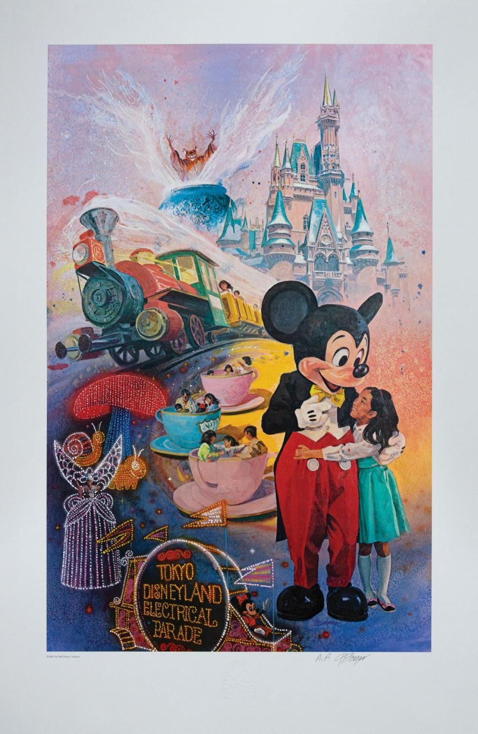 (Tokyo Disneyland, 1988) A very rare, signed artist's proof of Charles Boyer's artwork celebrating the 5th anniversary of Tokyo Disneyland. Boyer signed the lithograph and marked it as an "AP" in pencil in the bottom-right. It measures 30"x20" and is in very fine condition.