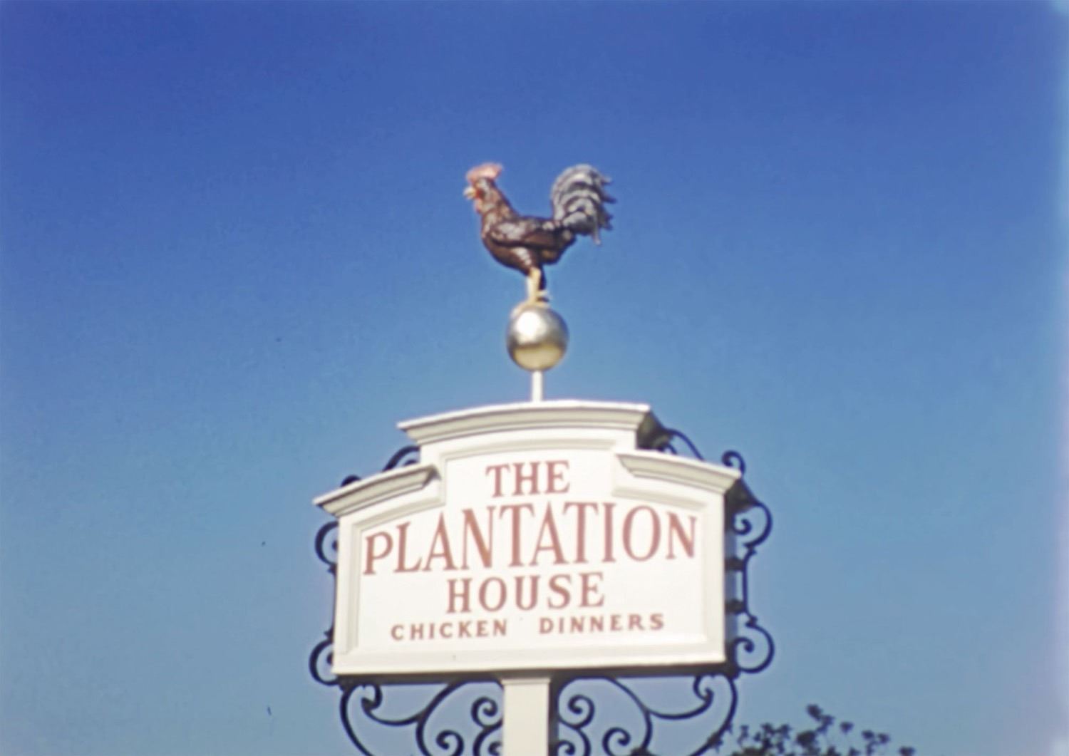 (Disneyland, c.1957) An extremely rare 16mm film featuring Swift's Chicken Plantation in Frontierland. This popular opening day restaurant ultimately closed in 1962, when the area was needed during construction of the park's newest land, New Orleans Square. The film comes from the collection of Disney Legend Milt Albright, and contains 1 minute of rare silent color footage of the restaurant. This incredible and scarcely seen footage from the park's earliest years comes in a 3.75" in diameter metal canister, as stored by Albright. The film has been tested and is in very good condition with minor wear from use.