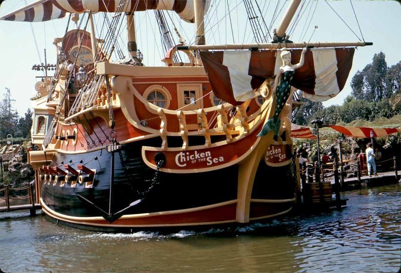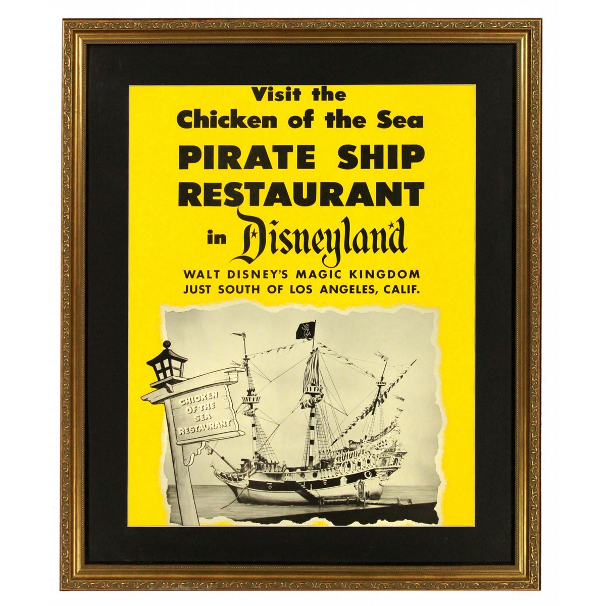 (Disneyland, 1955) Unusual 22x 17 in. promotional poster displayed in stores outside Disneyland as part of Chicken of The Sea’s cross-marketing with the park. Framed size is 29 x 24 in. In very good condition with light wear. Unexamined out of frame.