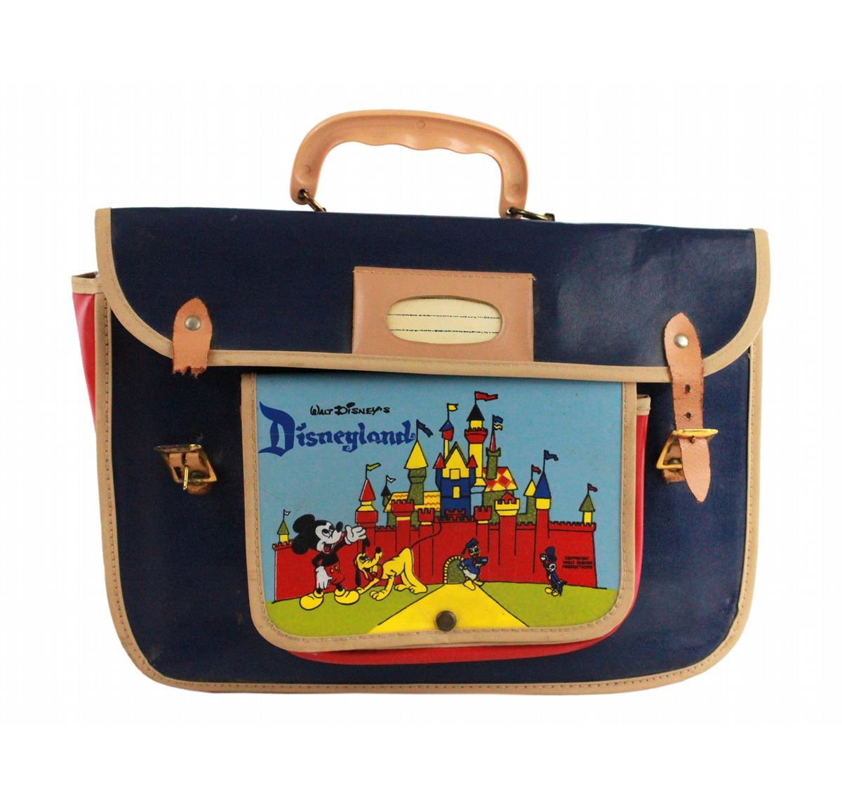 (Disneyland, 1960) Souvenir childs’ book bag featuring “Mickey Mouse” in front of Sleeping Beauty’s Castle. The bag measures 13 x 4 x 10 in. and is in very good condition.