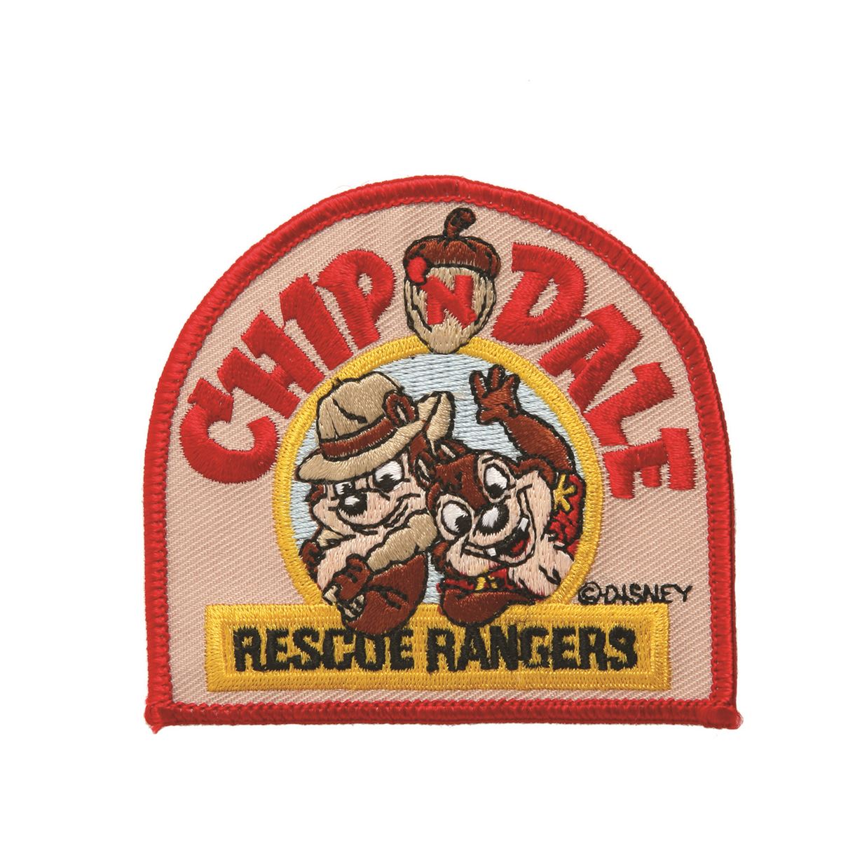 (Disneyland, 1991) Cloth embroidered patch featuring Chip and Dale rescue rangers and worn by cast-