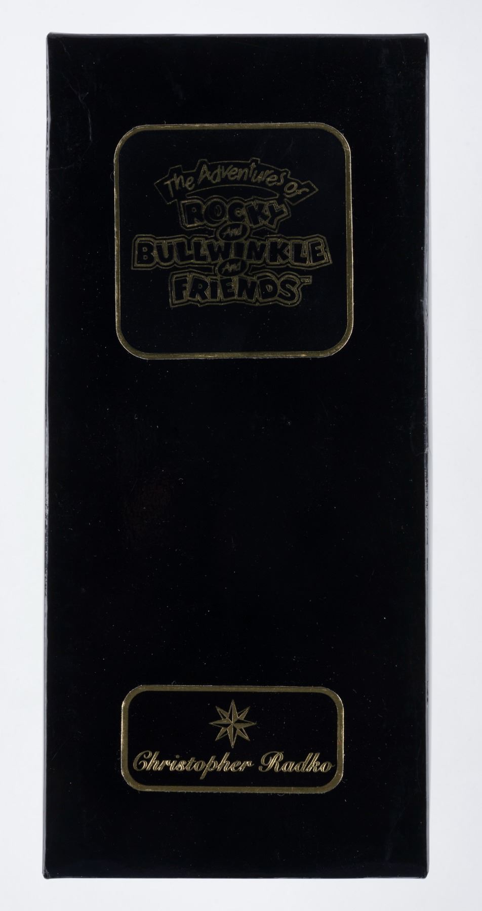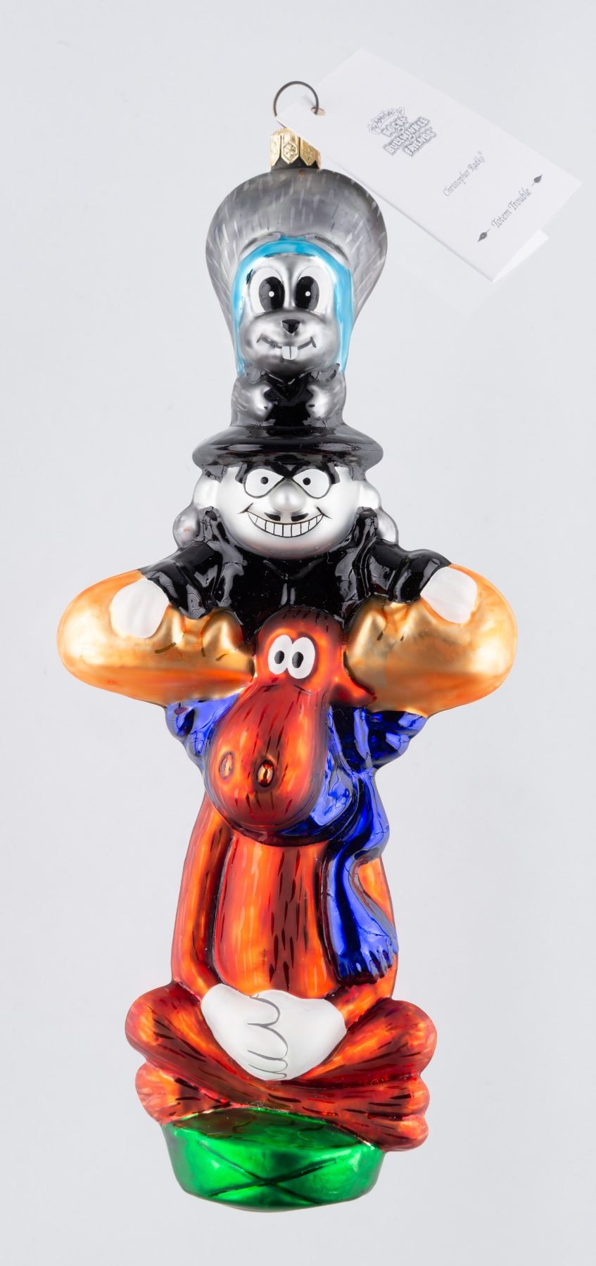 (Radko,1998) A rare Bullwinkle and Rocky glass Christmas Ornament produced by Christopher Radko in 1998. The ornament is 8" tall and is in fine unused condition with the original box.