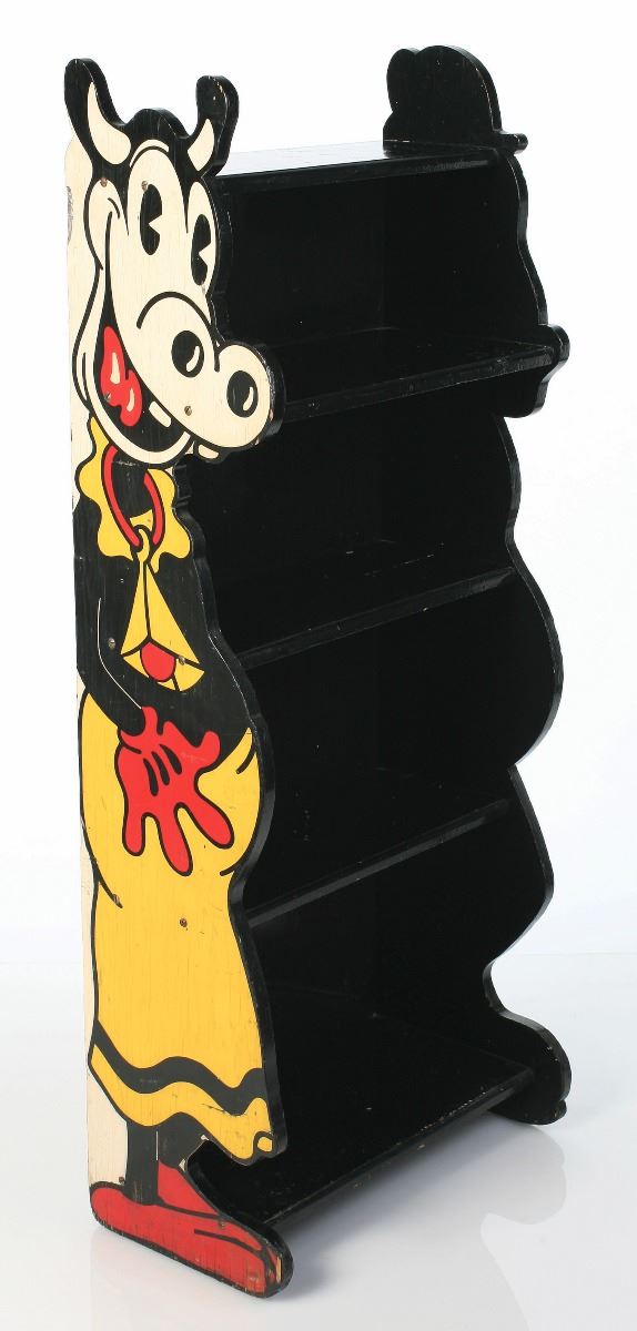 (Kroehler, 1934) This bookcase features large imagery of Horace Horsecollar and Clarabelle Cow on the left and right sides. Measures 21.5"11.25" and 52" tall. In very good condition with a few expected nicks and spots of paint wear.