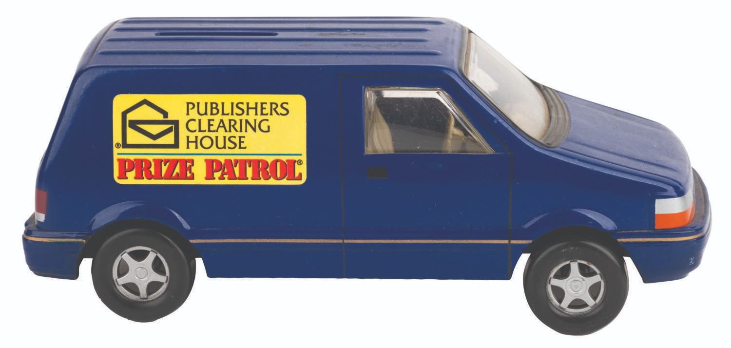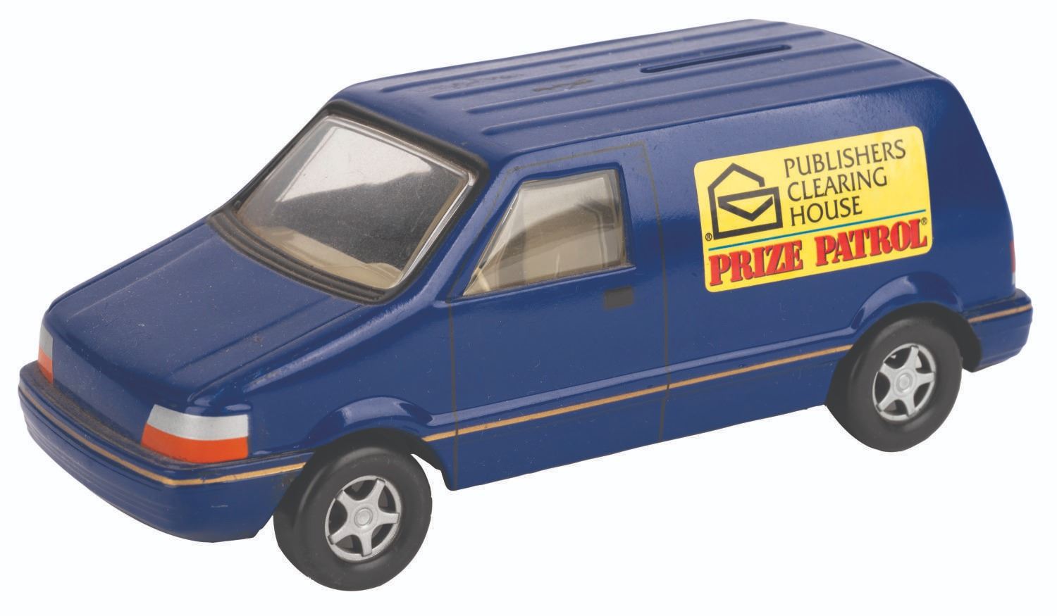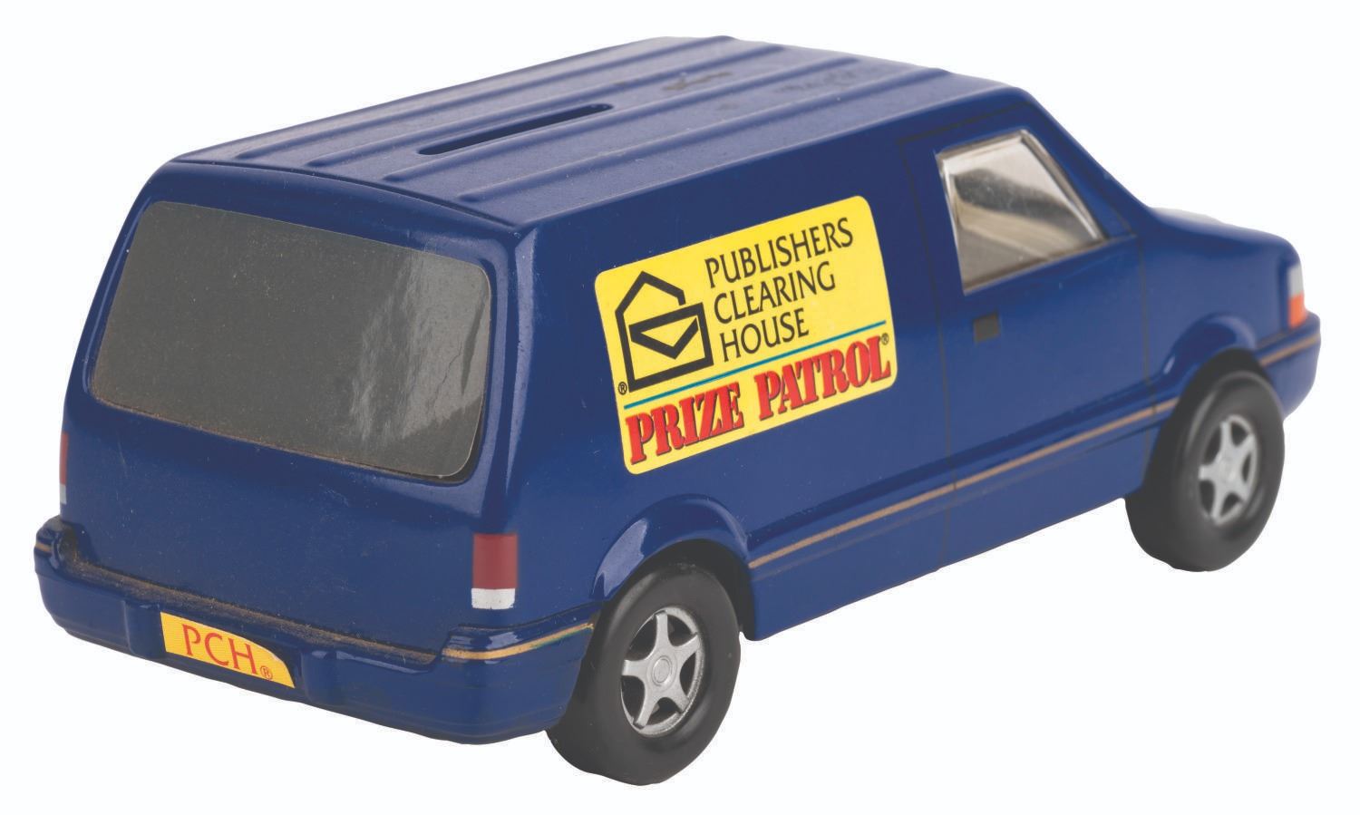 (IMG Group, 1996) A Publishers Clearing House Prize Patrol van bank from the personal collection of Clint Eastwood. The Prize Patrol traveled around the country, surprising event winners at their homes with a large check. Measuring 3” x 7” x 3” tall, the bank is in good condition with scratches, scuffs, stains, and wear from use.