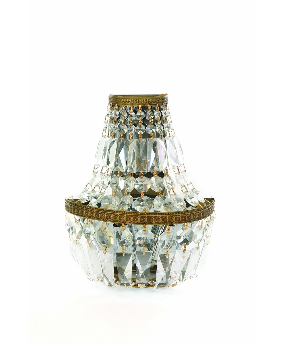 (Disneyland, 1980s) Beautiful crystal lighted wall sconce removed from Club 33 during recent renovations. The sconce measures 10”x5”x12” high. In very good condition, with (5) chipped crystals.