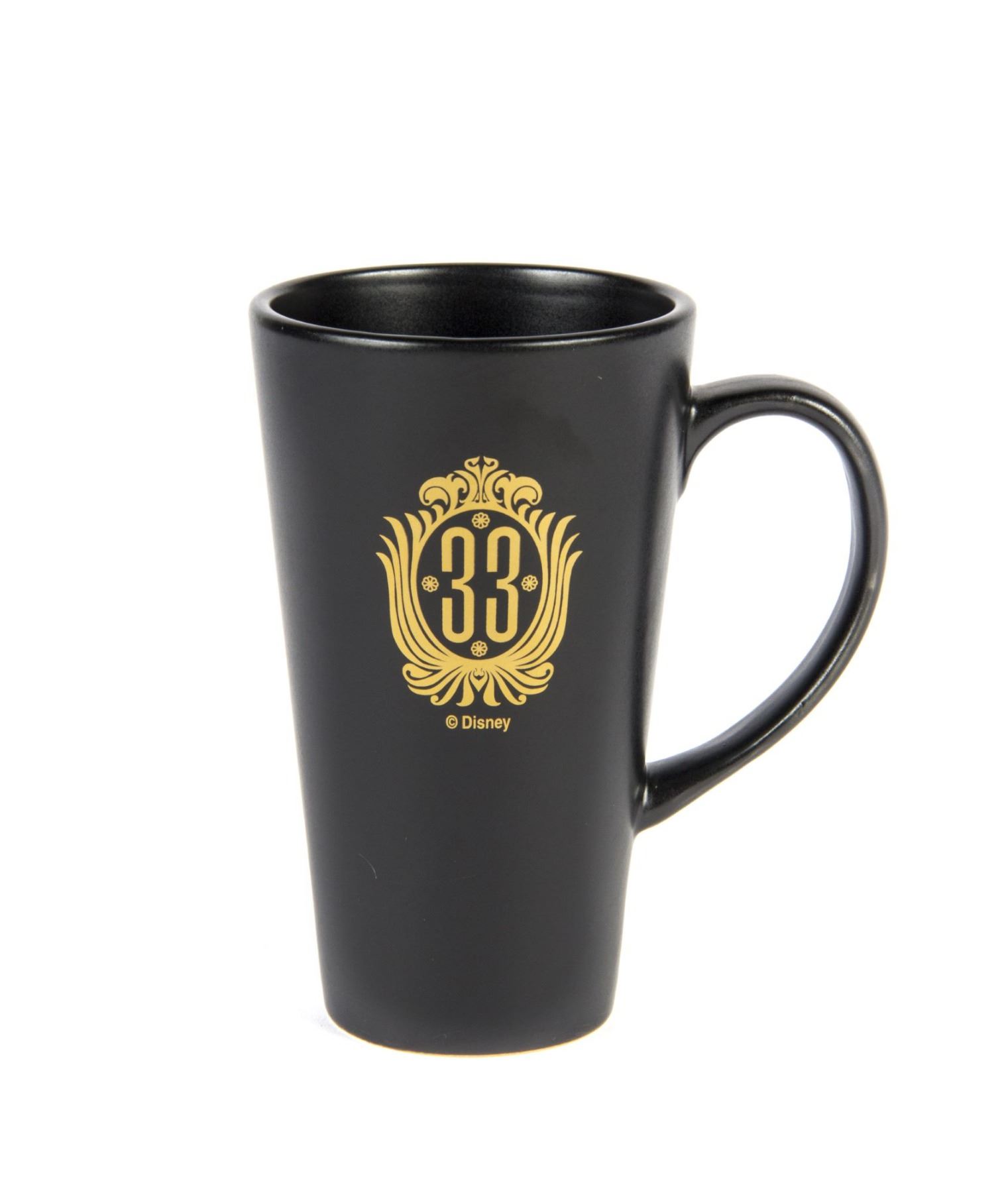 (Disneyland, c.1990s) A ceramic souvenir black and gold coffee mug featuring the logo for Disneyland exclusive "Club 33". The mug features the original logo for the club which has changed in more recent years. Measuring 6" tall, the coffee mug is in very good condition with little wear.