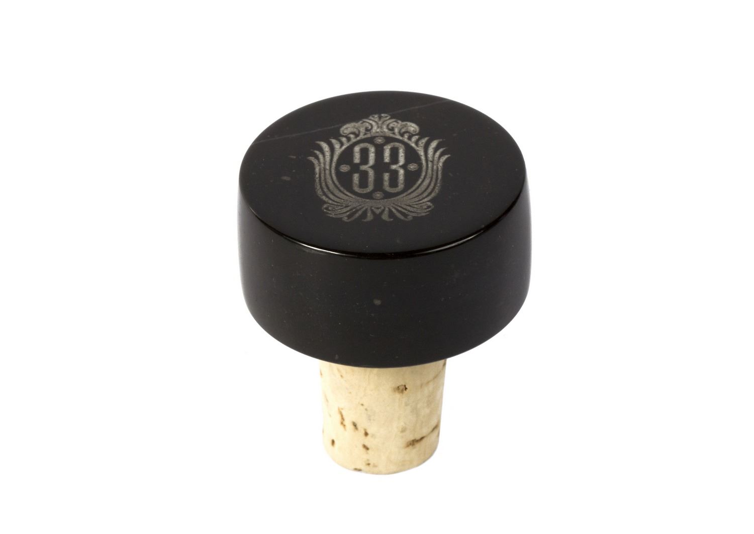 (Disneyland, c.2000s) A wine stopper from Disneyland's exclusive "Club 33". This stopper features a black stone top with the "Club 33" logo, and a cork bottom. The stopper measures 2" tall and is in very good condition.