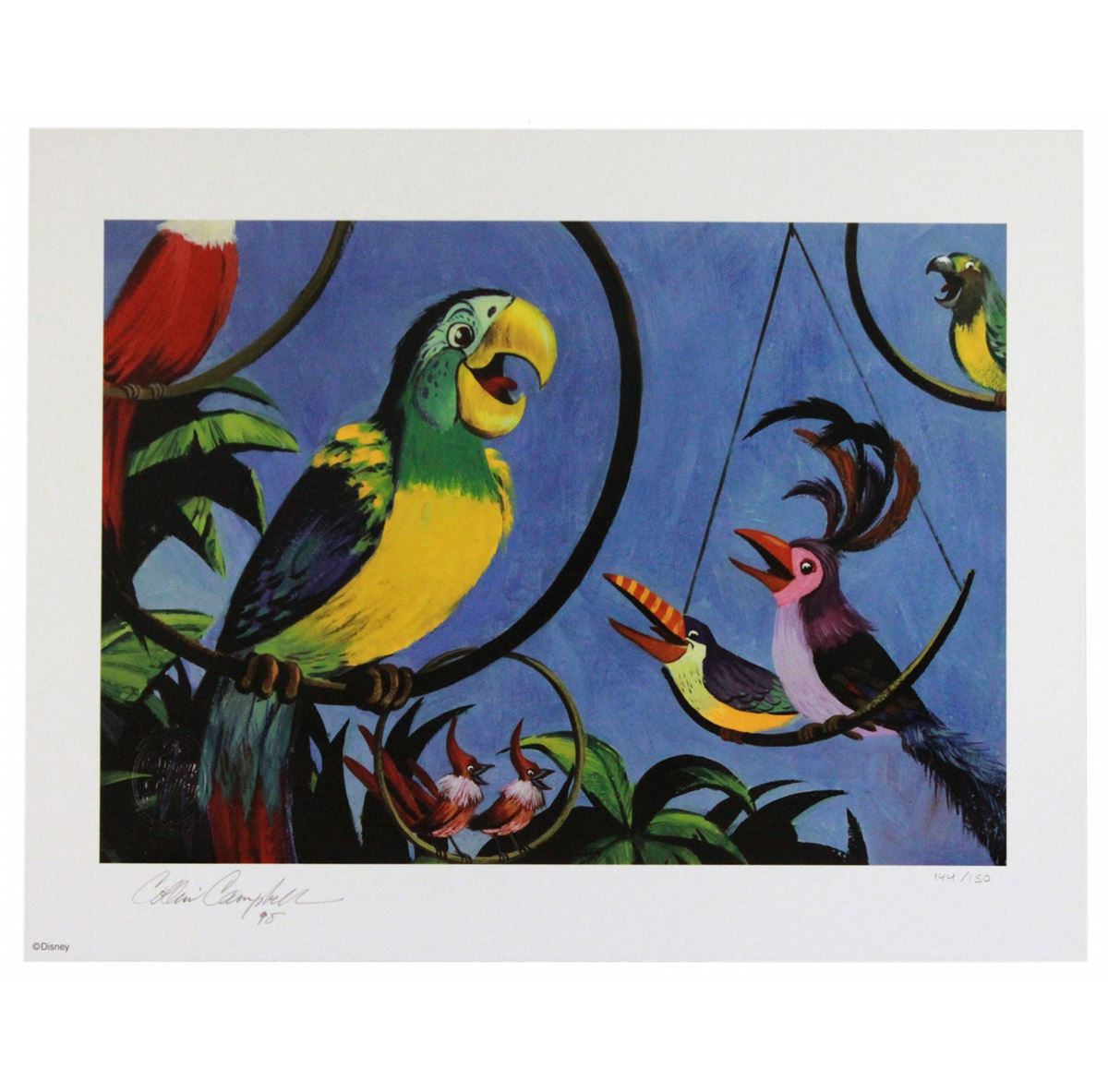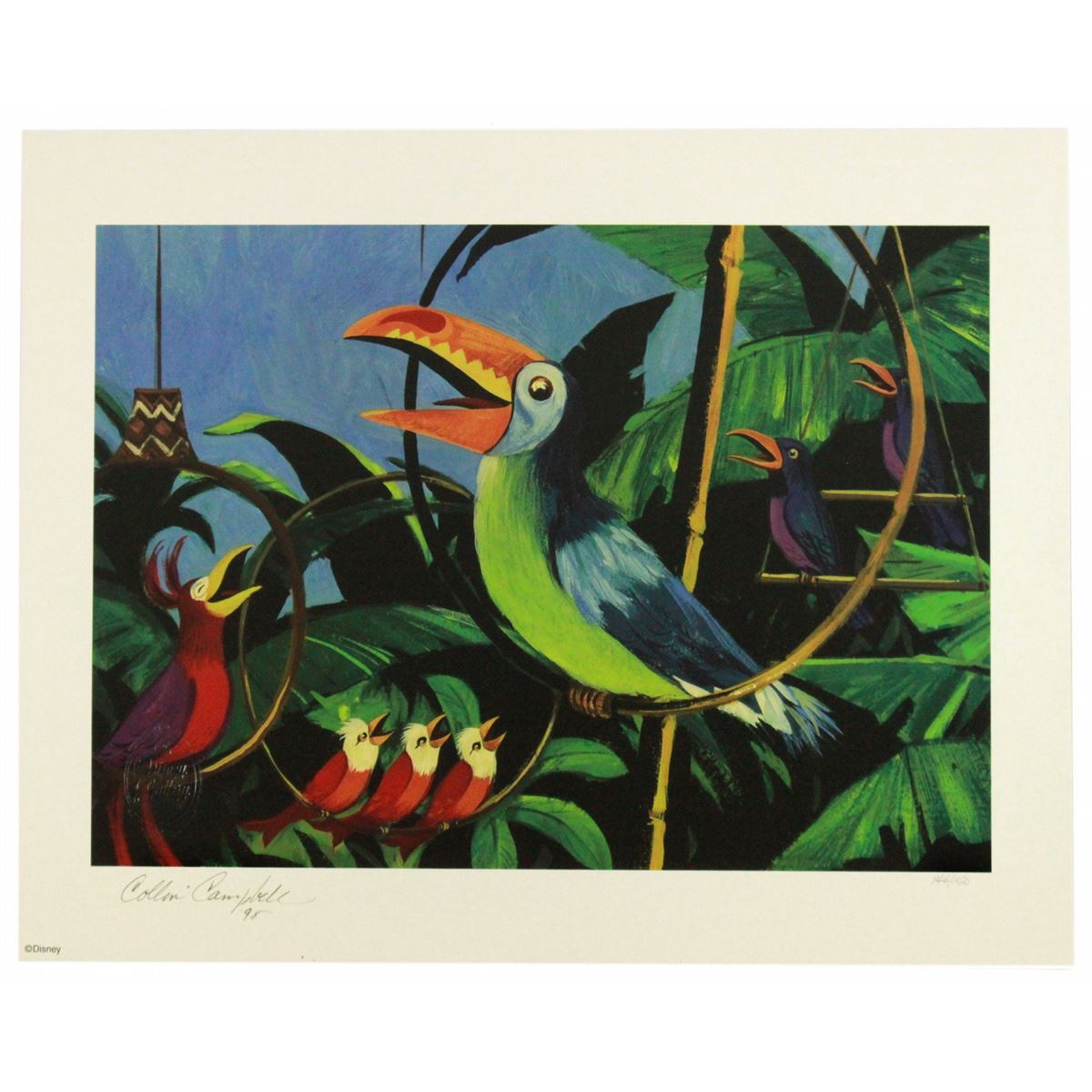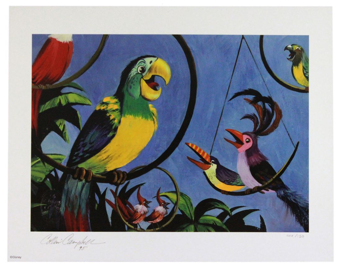 (Disneyland, 1999) Pair of limited edition “Enchanted Tiki Birds” concept art lithographs signed by Imagineer Colin Campbell. The artwork was produced in an edition size of only 150 pieces and sold through the Disney Gallery in the park. Each piece measures 11 x 14 in. In very fine condition.