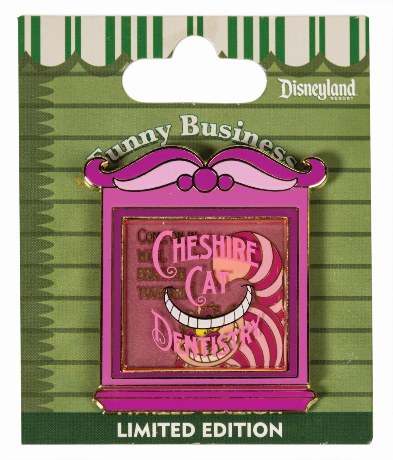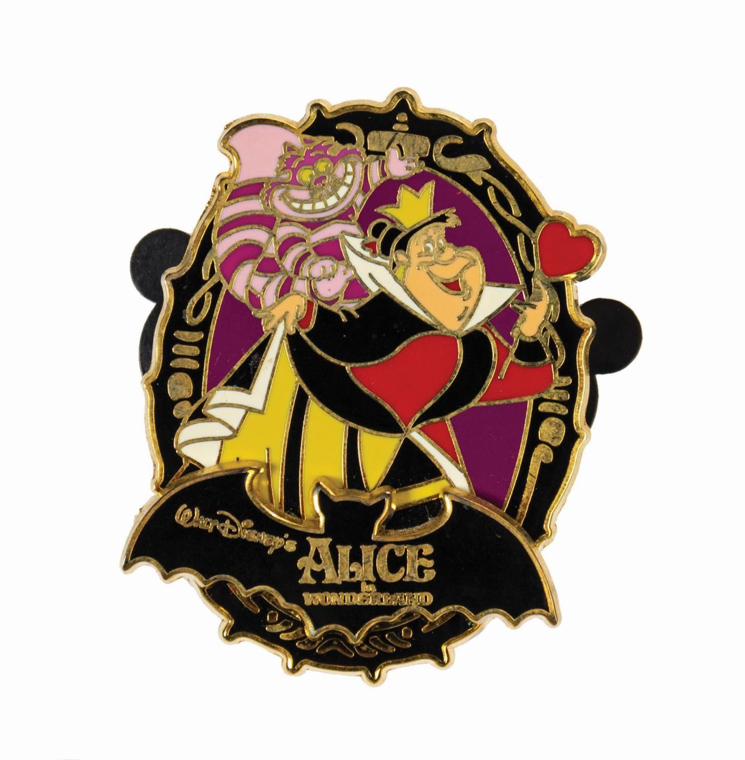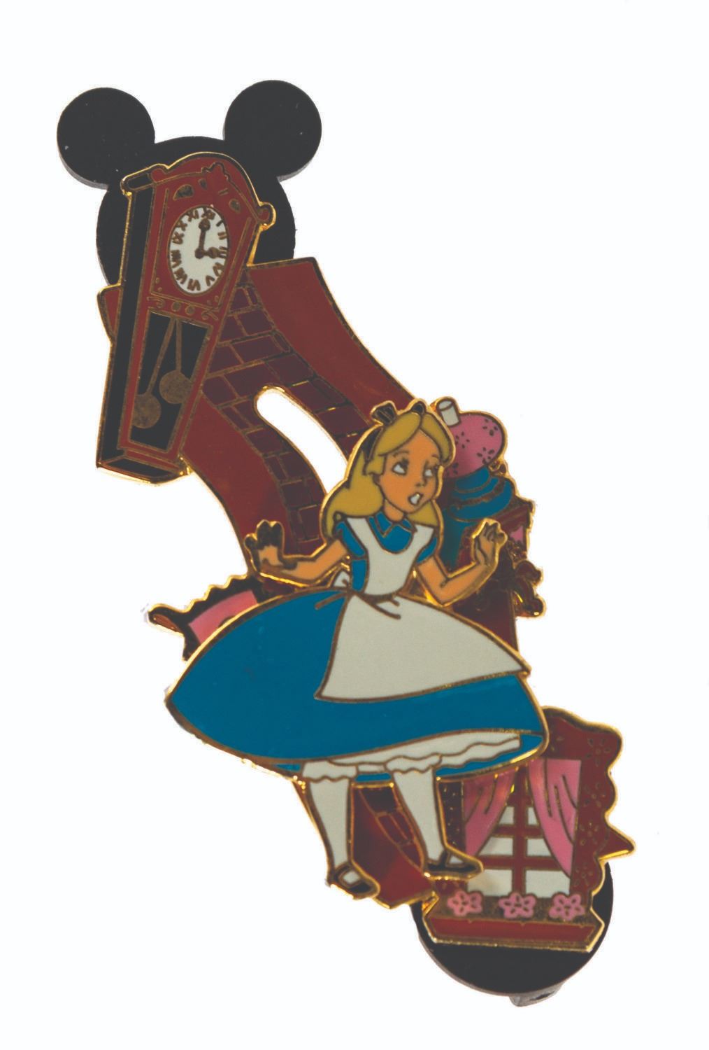 (Disneyland, 2002-14) A collection of (10) Alice in Wonderland limited edition pins. The grouping includes (5) Disney Auctions pins, (2) Mickey & Pals corner shop pins, a Disney Cruise Lines pin, a Disneyland pin, and a Walt Disney World pin. All the pins are from limited edition sets of 1000, and feature characters such as Alice, the Cheshire Cat, the Mad Hatter, the Queen of Hearts, and Tweedle Dee & Tweedle Dum, with scenes related to both the film and the parks. Ranging from 1.75"x1.25" to 2.25"x2.25", the pins are in very good condition with minor surface wear, including some spots of tarnish on the outlines. One of the pins is still on its original backing.
