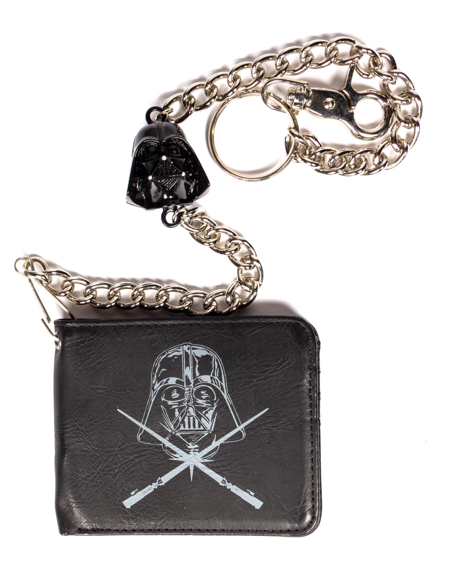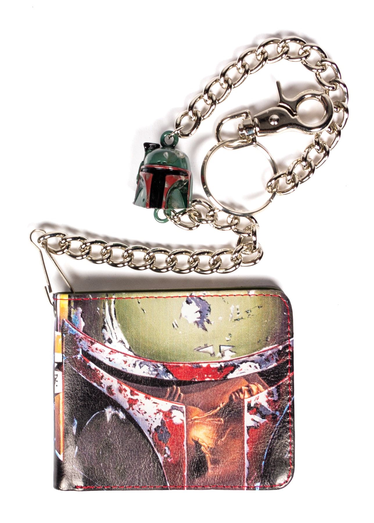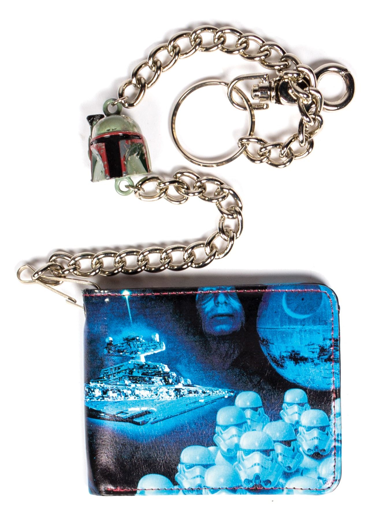 (Lucasfilm, c.2010-11) A collection of (12) production samples for a line of Star Wars wallets that were created by the clothing brand Rock Rebel. The wallets feature imagery of various characters and scenes from the iconic film series. Some of the characters depicted include Boba Fett, Darth Maul, Darth Vader, and Storm Troopers. Four of the wallets have attached chains with figural heads. Each of the wallets measure 3.5"x4.25" when closed and the chains have a length between 18" and 20" long. The condition is very good with minor surface wear.