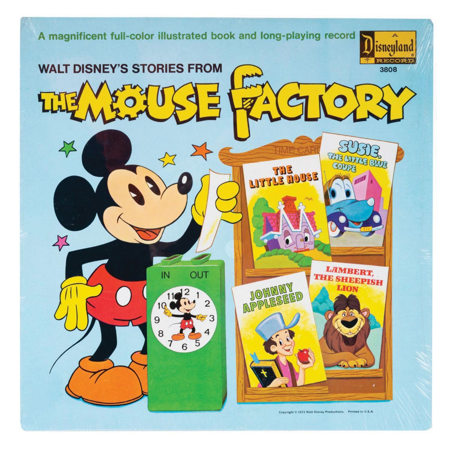 (Disney, 1958-88) A collection of (19) Disneyland and Buena Vista LP records. This assortment of 33 1/3 rpm albums reflect the wide range of Disney's recorded output. Highlights include: Musical Kaleidoscope (1959), Original Music from The Living Desert & The Vanishing Prairie (1964), Alice in Wonderland (1969), Stories from the Mouse Factory (1972), Mousekedances & Other Mouseketeer Favorites (1974), and Oliver and Company (1988). Measuring 12" each, the records are in very good to fine condition with minor edge wear to the covers. Each record is sealed in plastic, however it is likely many were sealed at a later date.