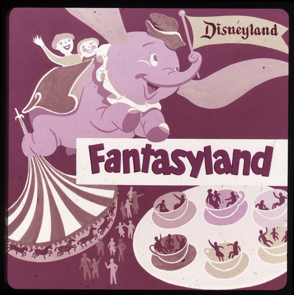 Collection of (24) color magenta early vari-vue souvenir slides of Disneyland.
