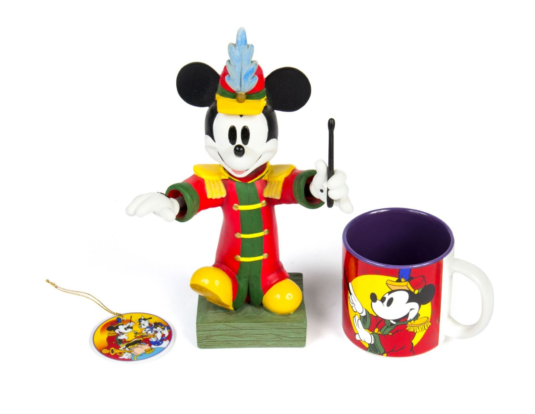 (Disneyland, 1993) A collection of (3) souvenirs from the 1993 Disneyana Convention at Disneyland. These collectibles feature Mickey Mouse dressed as a Band Leader, and the set includes a resin bobble head, a mug, and a Christmas ornament. The mug is limited to 3000 pieces and the ornament is limited to 5000 pieces. The bobble head measures 10" tall and the set is in very good condition.