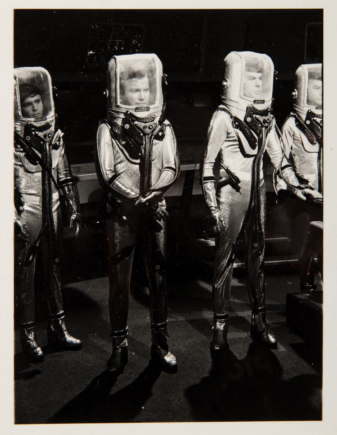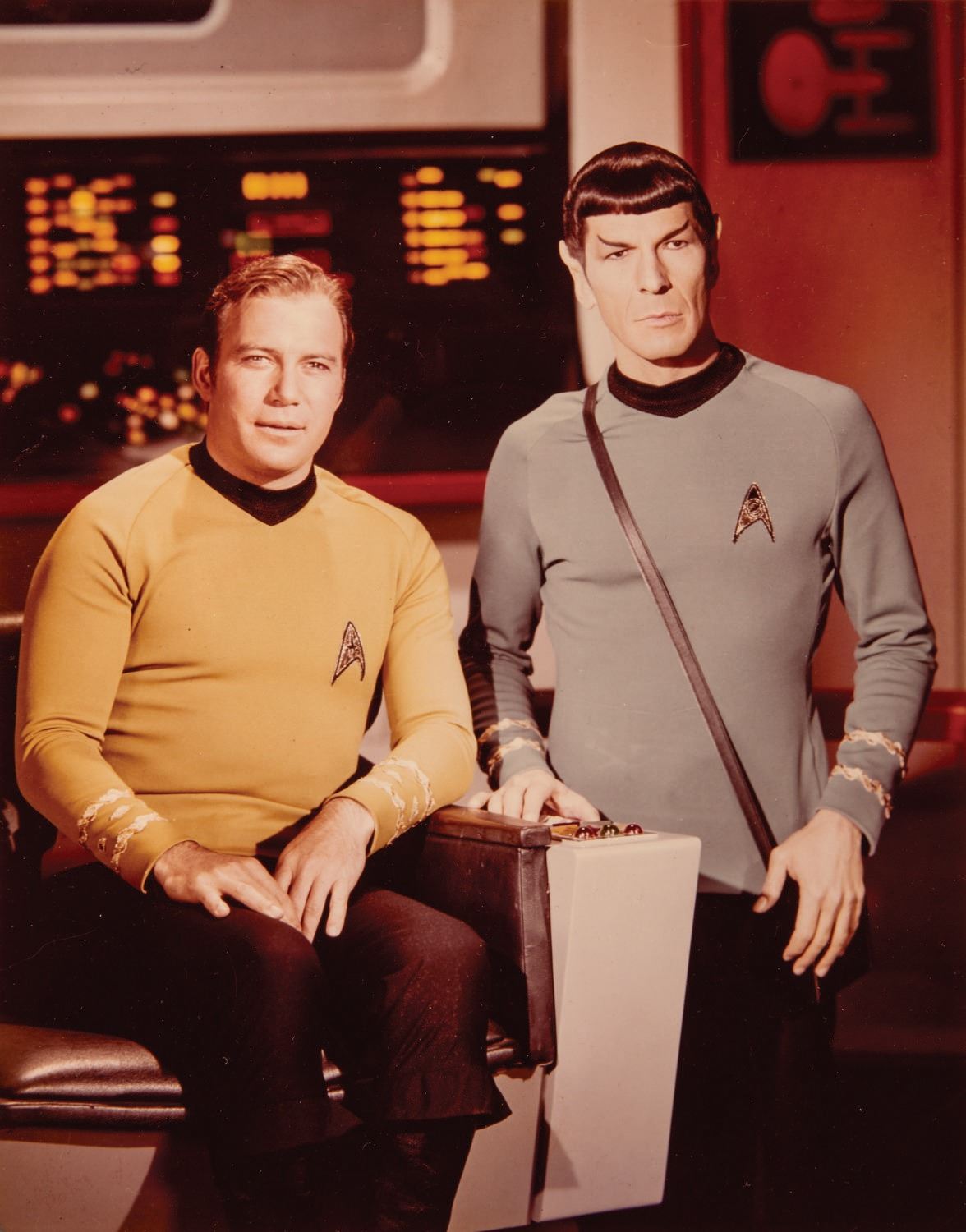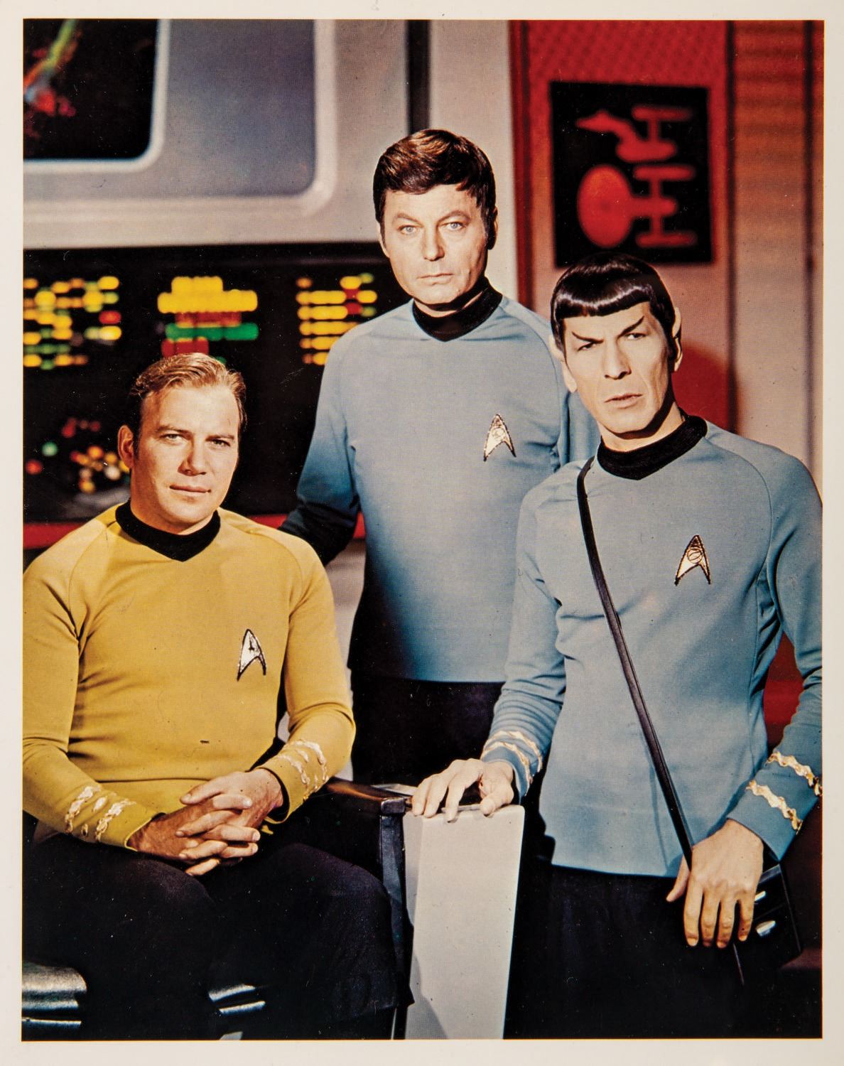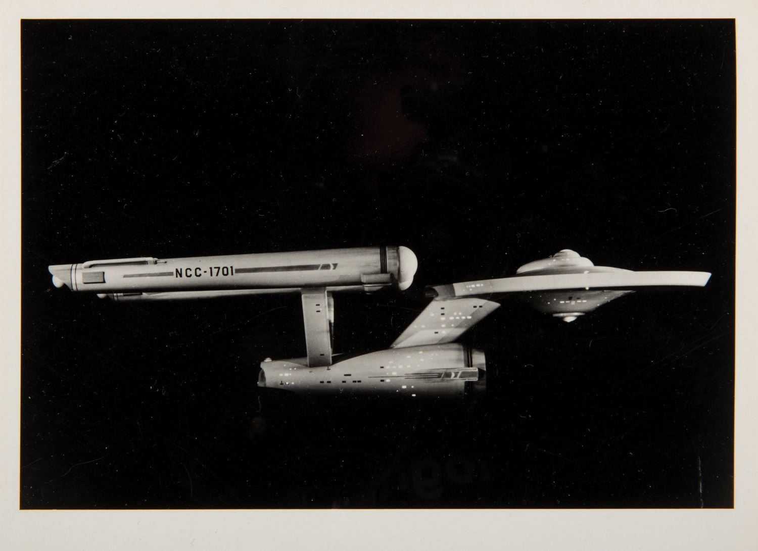 (Paramount, c.1960s-70s) A collection of (30) Star Trek publicity photos. The lot includes memorable scenes spanning all three seasons of Gene Roddenberry's popular TV series. Notable among the collection are two large photos of Kirk and Spock, two photos of the USS Enterprise, (6) publicity photos retaining their NBC Television captions, and (10) color photos. Measuring 9"x7" to 14"x10.75", the photo prints display in good overall condition, exhibiting some curling and wear to edges and corners.