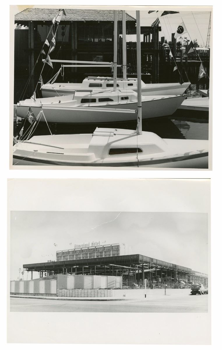 (Disneyland, 1970s) Collection of (4) early publicity photos of the Disneyland Hotel. The backs of the photos include notes and publicity information sheets. Photos measure 10"x8" each. In good condition.