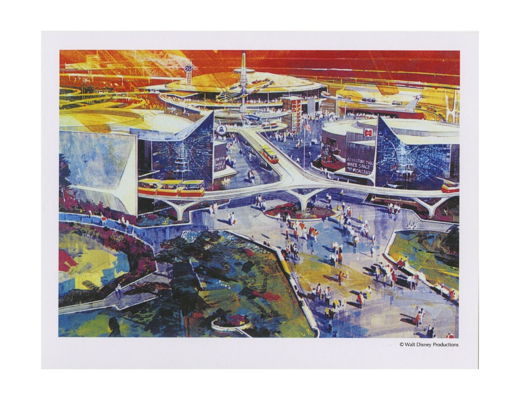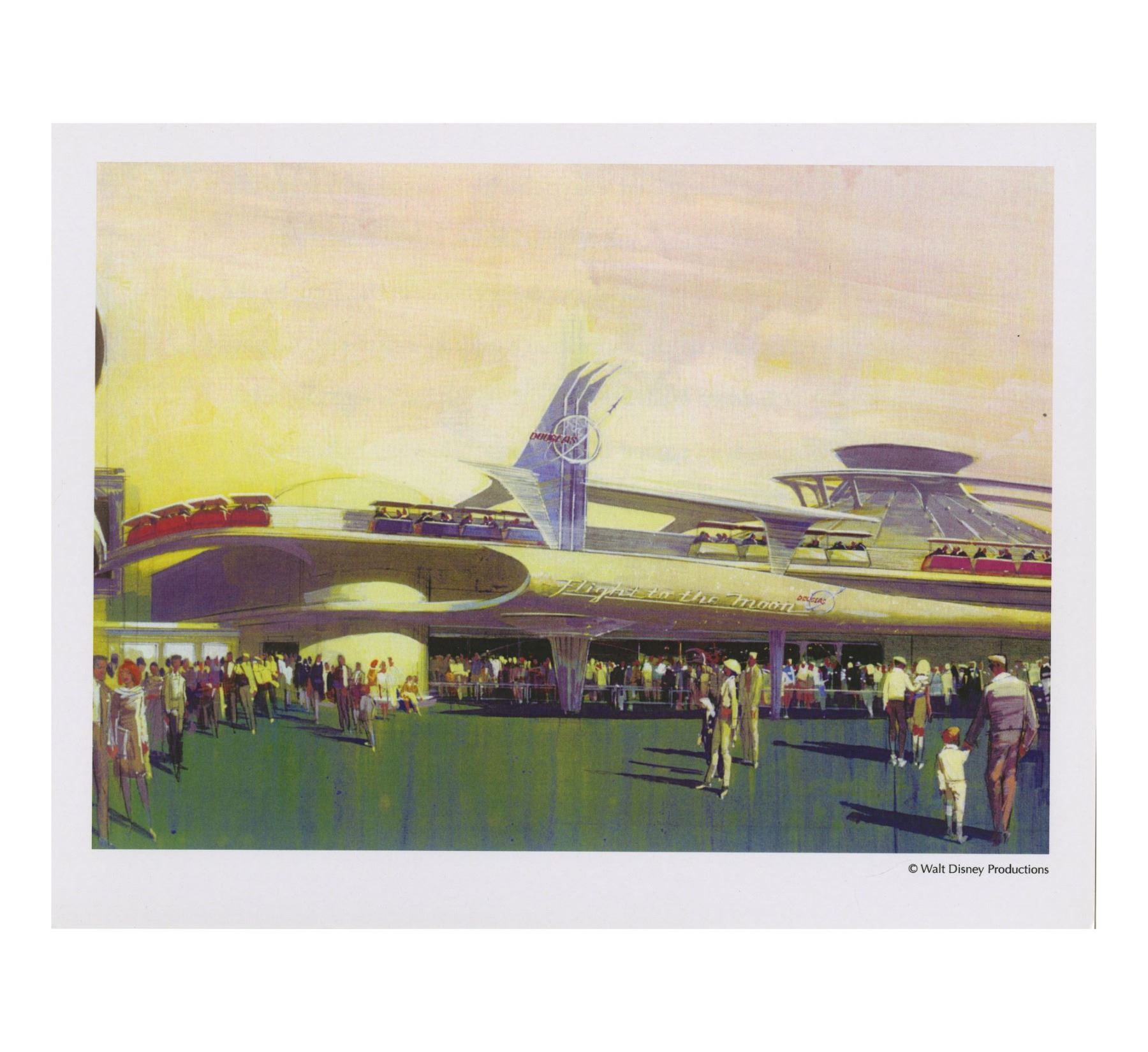 (Disneyland, c.1998) A collection of (4) concept art prints featuring depicts of Disneyland's Tomorrowland. These prints are believed to have been created as part of the "New Tomorrowland" refurbishment in 1998, and include depictions of the "Flight to the Moon", "PeopleMover", "Adventure Thru Inner Space", and more. The prints range in size between 5.5"x11" and 8.5"x11". The condition is very good.