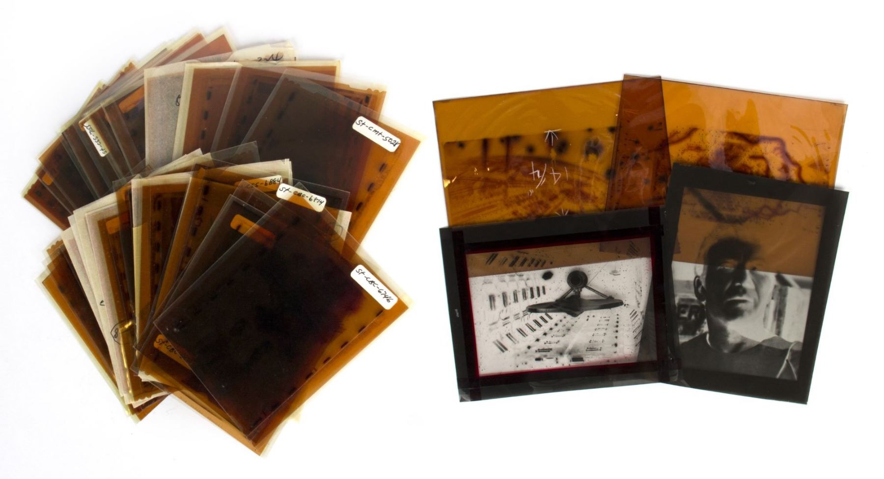 (Paramount, 1979) A large collection of film negatives from the collection of Bill Wallen, who helped create promotional and advertising campaigns for "Star Trek: The Motion Picture". This collection includes (39) small 5"x4" negatives and (4) larger 10"x8" negatives. The imagery in these negatives is a remarkable assortment from the "Star Trek" series such as: Kirk, Spock, the Starship Enterprise, poster imagery for "Star Trek: The Motion Picture", the crew, and much more. The collection is in very good overall condition with minor creases to a few images and some expected minor wear throughout from use.
