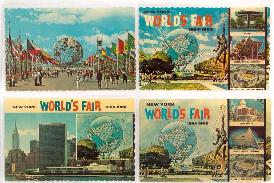 (World's Fair, 1964-65) A collection of (44) assorted postcards from the 1964-65 New York World's Fair. These cards feature great concept image and photos of the World's Fair, and some include their original envelopes. Most of the postcards measure 5.5"x3.5" and the set is in overall very good condition with minor wear.