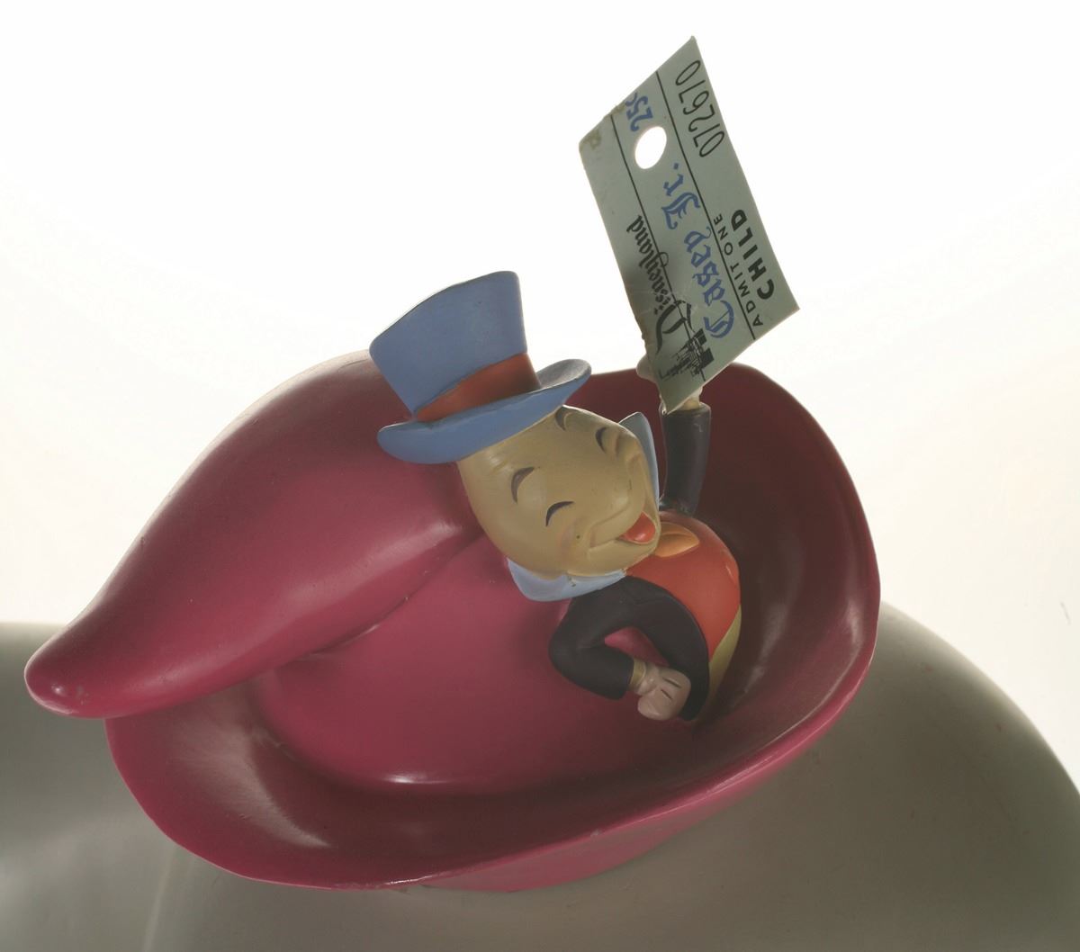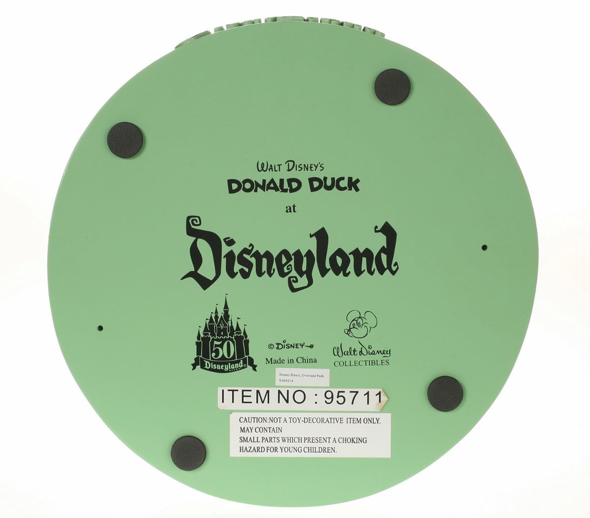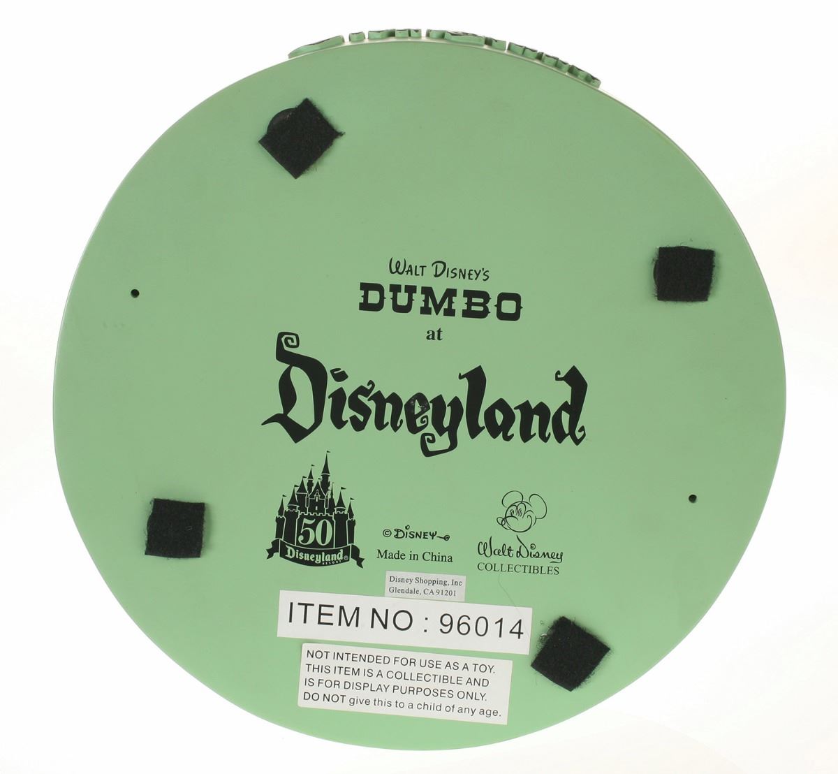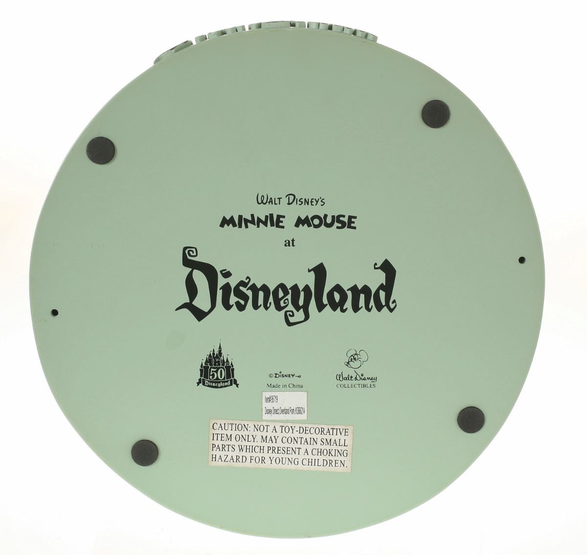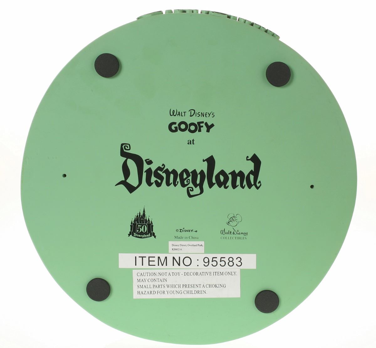 (Disneyland, 2005) Collection of (5) Disneyland 50th Anniversary "Big Fig" figures. The hand-painted resin cast figures were available for a limited time in the park and have become extremely hard-to-find. Includes (1) Mickey, (1) Minnie, (1) Donald, (1) Goofy, and (1) Dumbo figure. Each character has a green base that reads "Disneyland", and is wearing or holding replica vintage souvenirs from the park. Each figure measures approximately 13" in diameter and 21" tall, with Goofy standing a bit taller, and Dumbo a bit wider. The set is in good condition with some wear throughout, including a break to Mickey's left ear which has been repaired.
