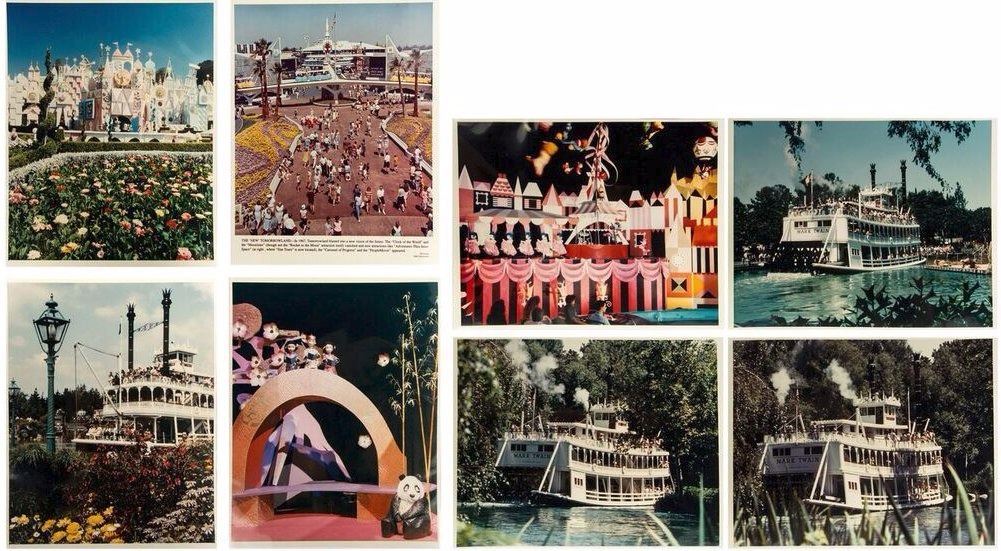 (Disneyland, c.1980s-90s) A collection of (8) photo prints of several Disneyland attractions from the 1980s-90s. These photo prints, created on high-quality Kodak photo paper, include such attractions at the "Mark Twain" and "It's a Small World" as well as a great image of Tomorrowland. Each photo measures 10"x8" and the set is in very good condition.
