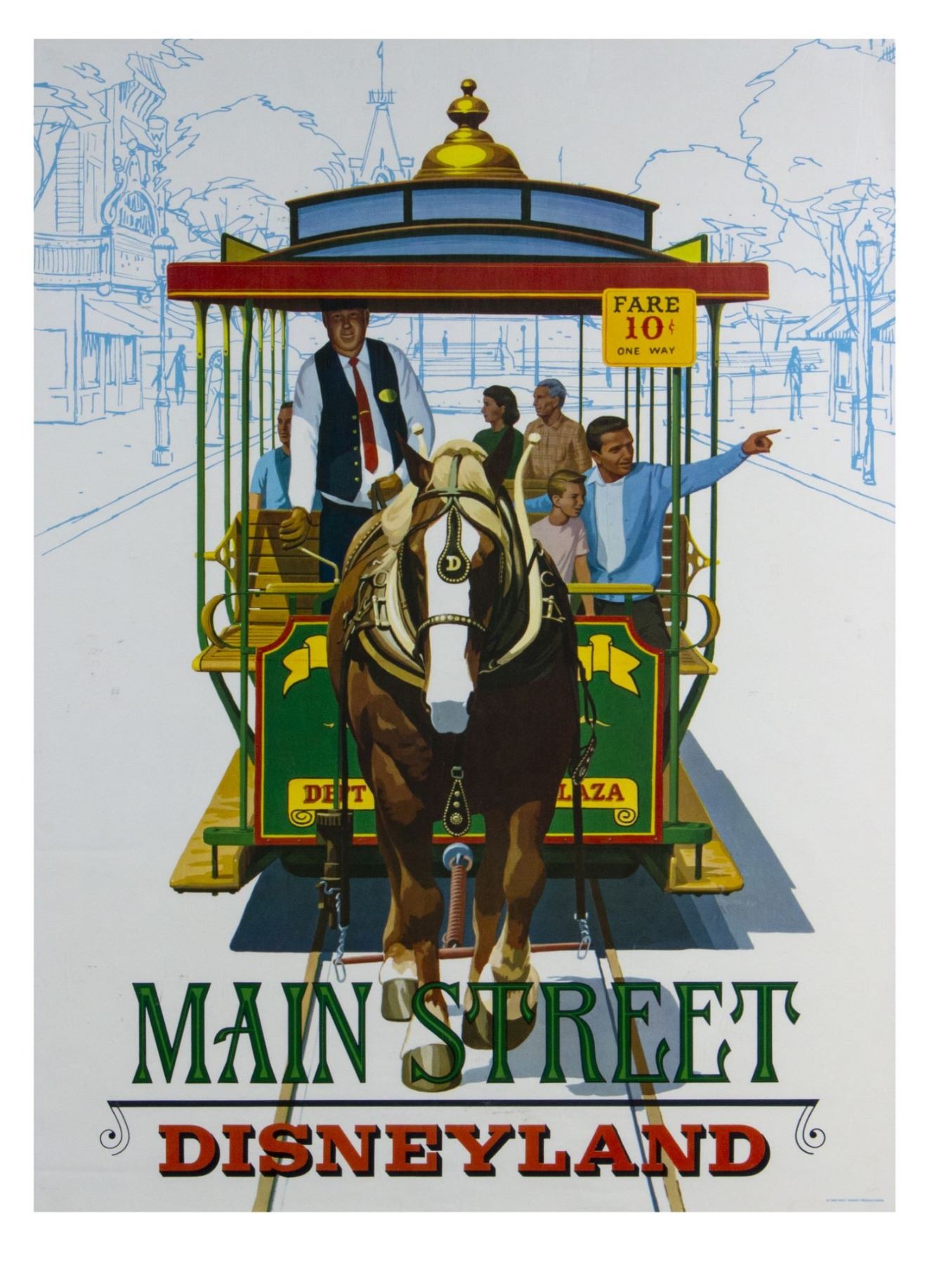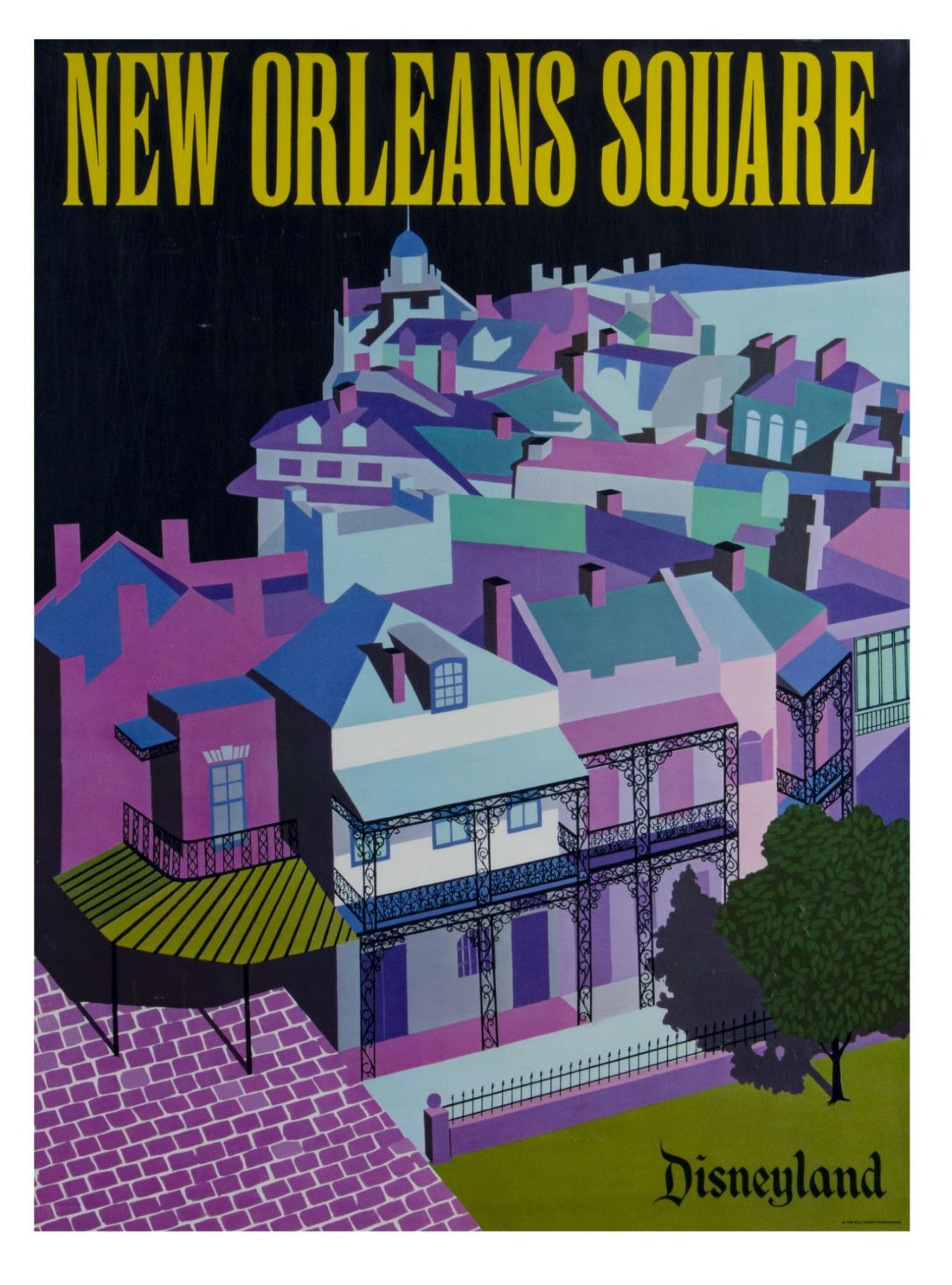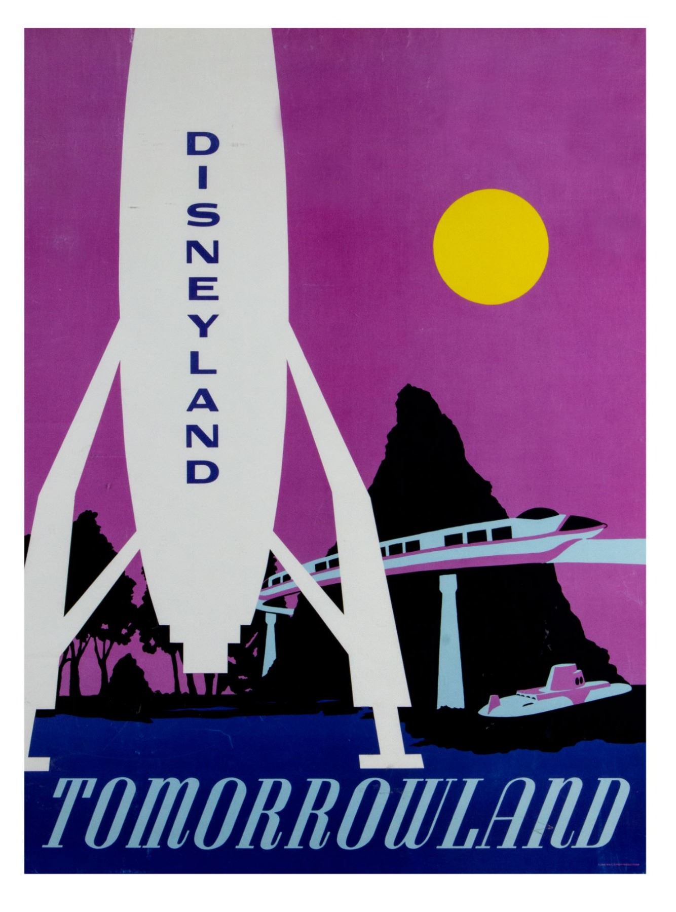 (Disneyland, 1966) A very scarce complete set of (6) "near-attraction" posters from the Summer of 1966. These beautiful printed posters were actually displayed in the park as attraction posters but also sold individually at the Main Street Emporium. The posters were only available that Summer and as such, are very hard to come by, with a complete set such as this being exceptionally rare. The posters measure 30"x22" each, and are in good condition with varying amount of wear including some minor creases, some scuffs from use, and a thin tear along the bottom-edge of the Fantasyland poster that was once repaired with tape on the back side.