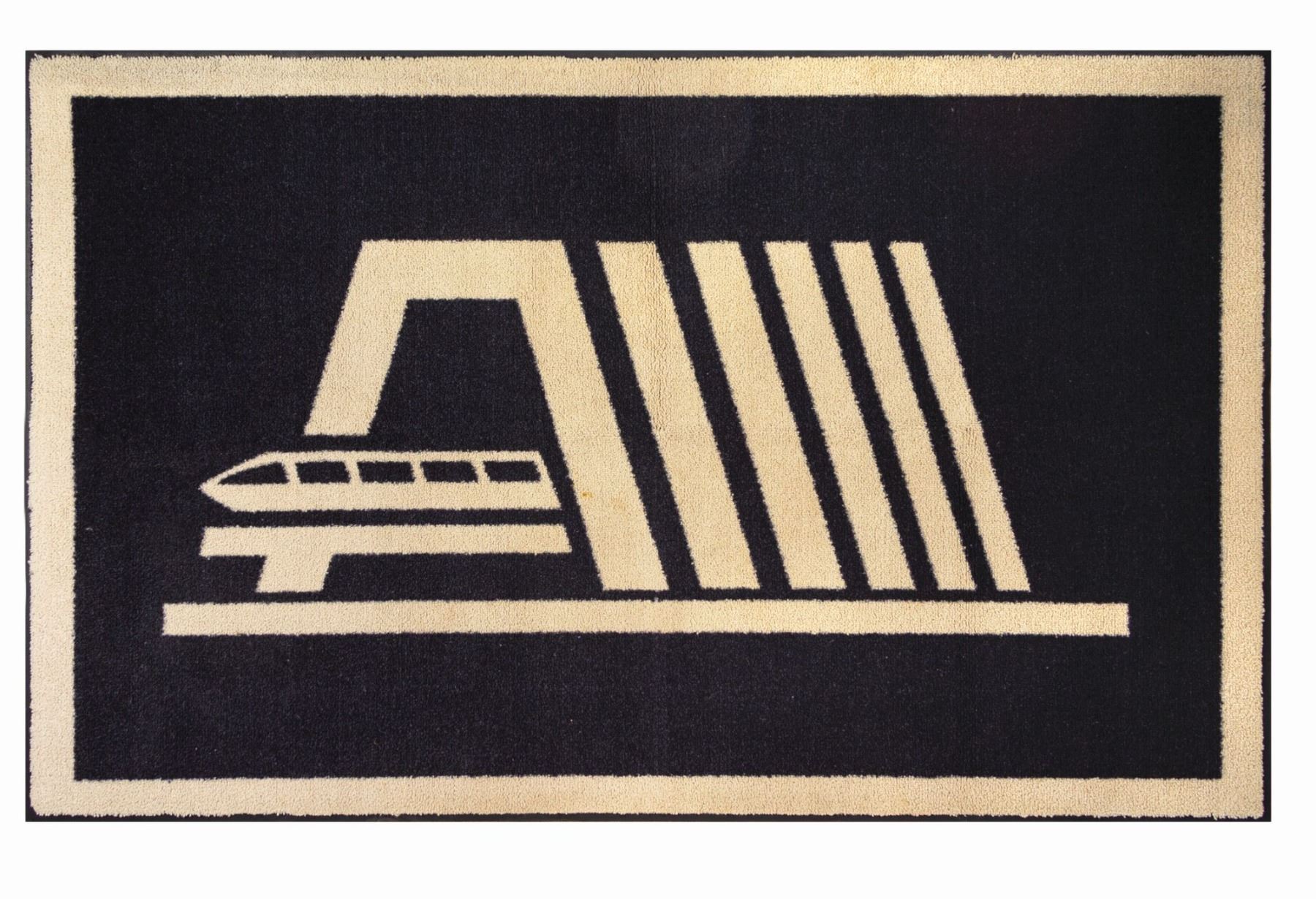 (Contemporary Resort, c.2000s) A large entry mat created for Walt Disney World's Contemporary Resort. The mat features the logo for the hotel over a silver backing and has a label on the reverse which reads "Property of WDW." The mat measures 43"x67" and is in very good condition with light wear, including some small spots of staining near the center.