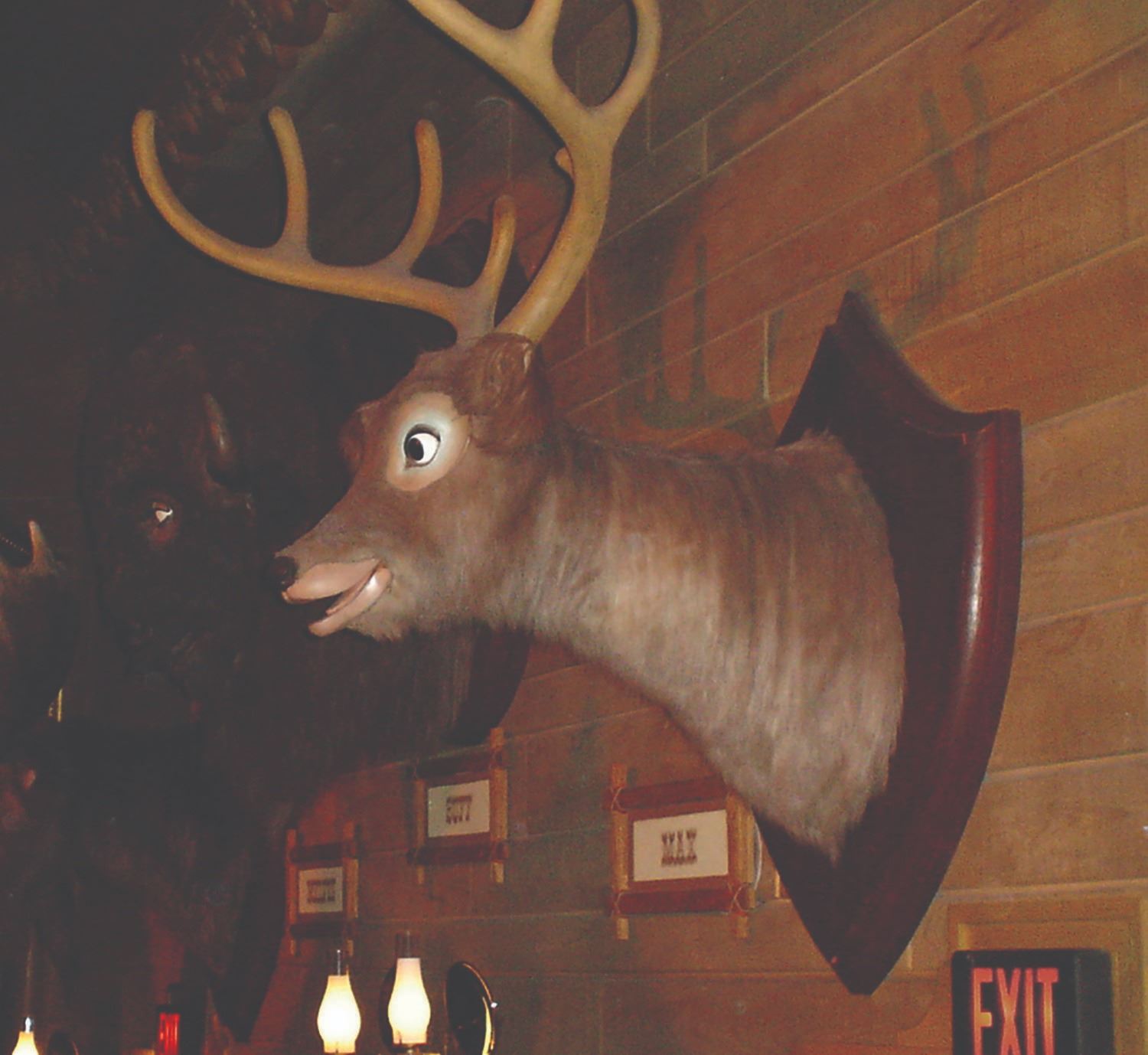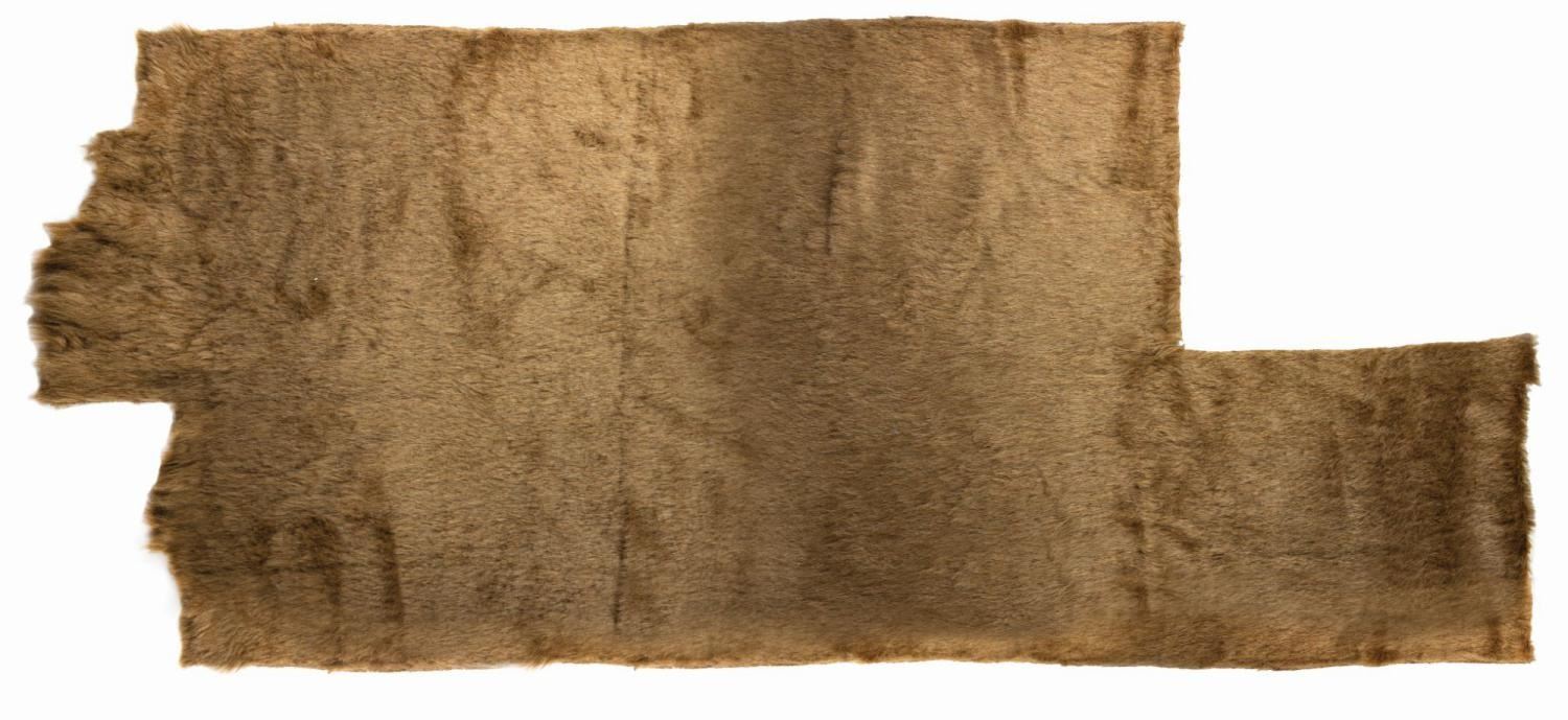 (Disneyland, c.2000s) A pelt of replacement faux fur for the Max the Whitetail Buck audio-animatronic figure from the Country Bear Jamboree. Max was part of a comic team of audio-animatronic hunting trophies with Buff the Buffalo and Melvin the Moose that hung in the Country Bear Playhouse and commented on the action during the show. The Playhouse closed in 2001, replaced by the Many Adventures of Winnie the Pooh attraction. Max, Buff, and Melvin were incorporated into the new ride, hanging above the Hunny Heaven room. The irregularly-shaped pelt measures approximately 61"x33" and is in very good condition, exhibiting some molting and stickiness to the touch.