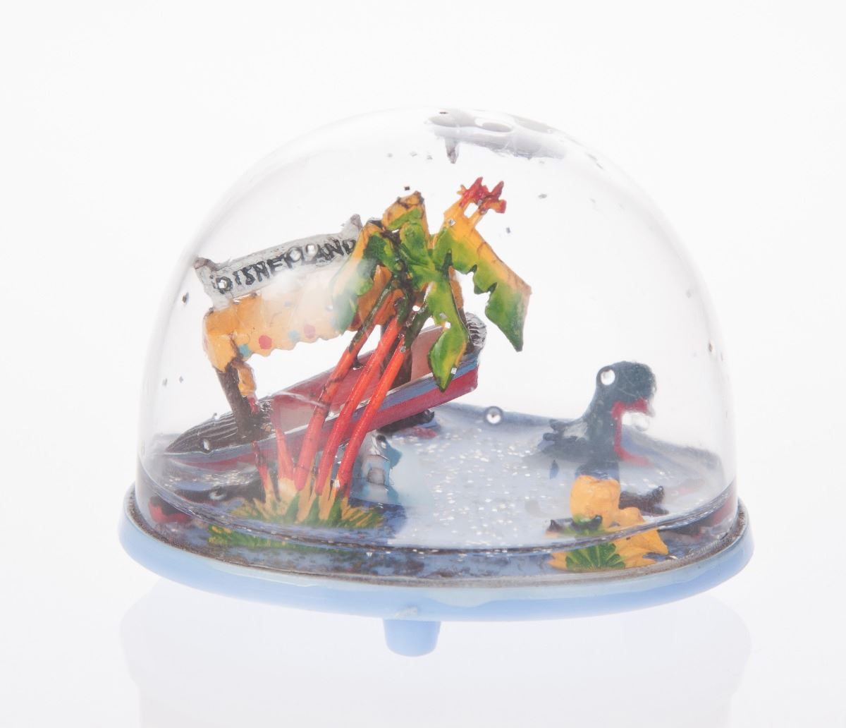 (Disneyland, 1960s) Charming Disneyland snow globe featuring a depiction of a crashed "Jungle Cruise" boat surrounded by wildlife. Measures 2"x2.75"x2.1". In good condition, still retains some of its water.