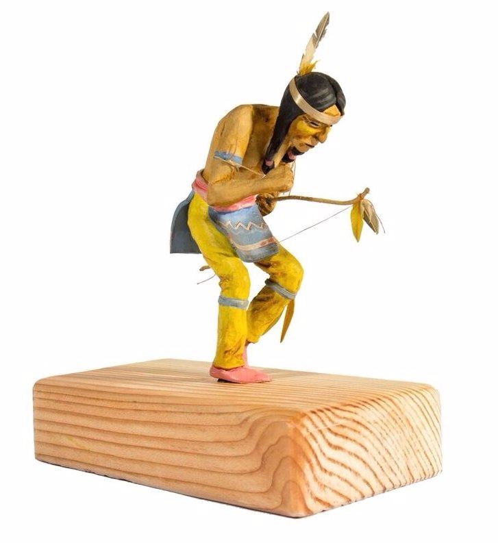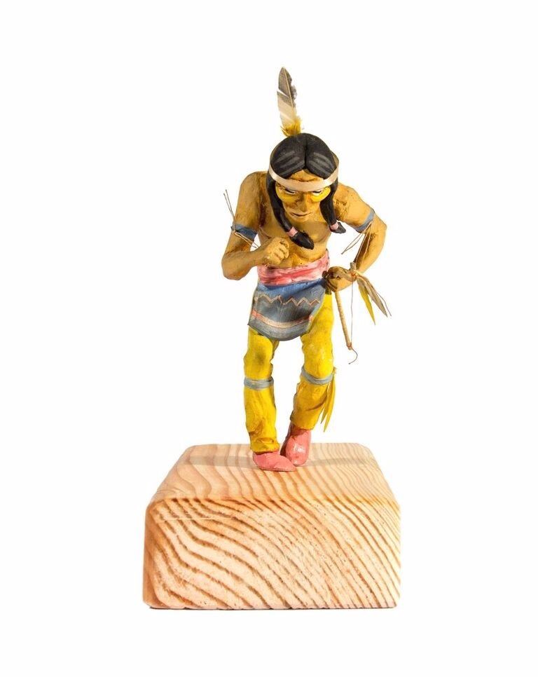 (Disney, c.1960s-70s) An original maquette created by Imagineer Ken O'Brien for the legendary "Western River Expedition" attraction. This maquette was created during the scale-model phase of designing the attraction, and beautifully captures the energy of Marc Davis' original concept designs. This maquette features a dancing Indian holding a bow. This maquette is composed of painted resin over a wire armature and is adhered to a wooden base. This item measures approximately 6.5"x3.5" and 7" tall. This item has been lightly restored and is in very good condition with minor wear.