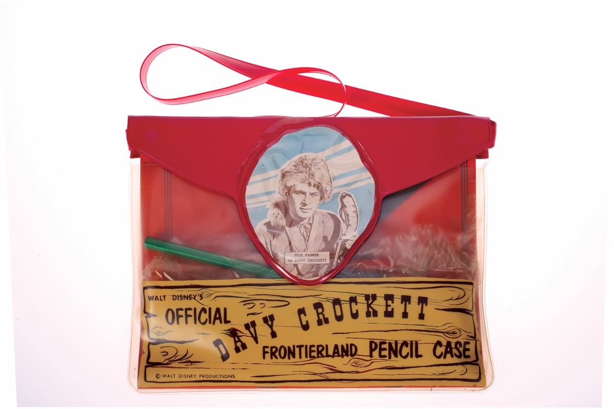 (Walt Disney Productions c.1950s) Beautiful Davy Crockett Pencil Case complete with Davy Crockett pencils. The plastic case measures 6.5"x8.5" and is in fine condition.