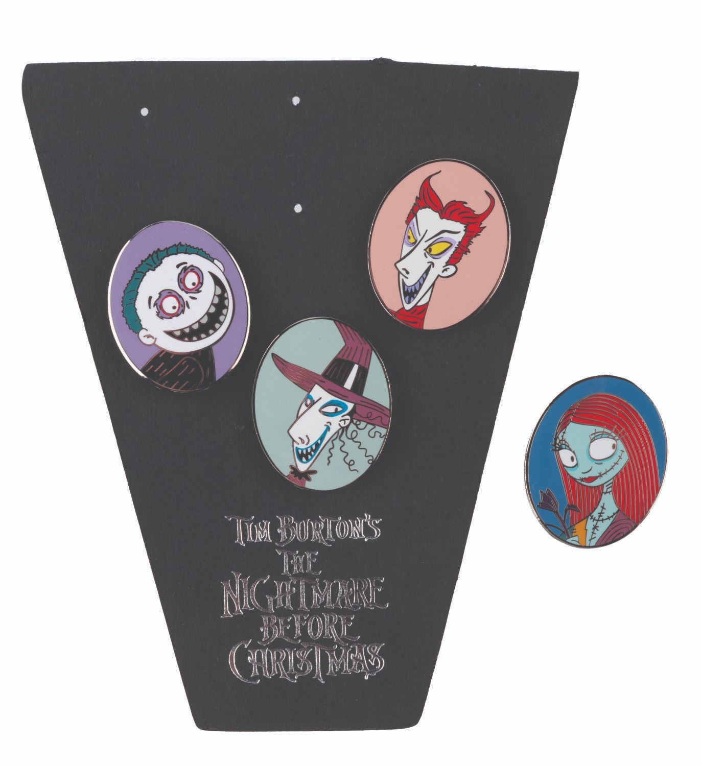 (Disney, 2005) Four "The Nightmare Before Christmas" limited edition 2500 pins of Lock, Shock, Barrel, and Sally. These were only available as part of a set of 6 Best Guest pins given with purchase of $150 or more through the Disney Catalog. The pins are in fine condition.