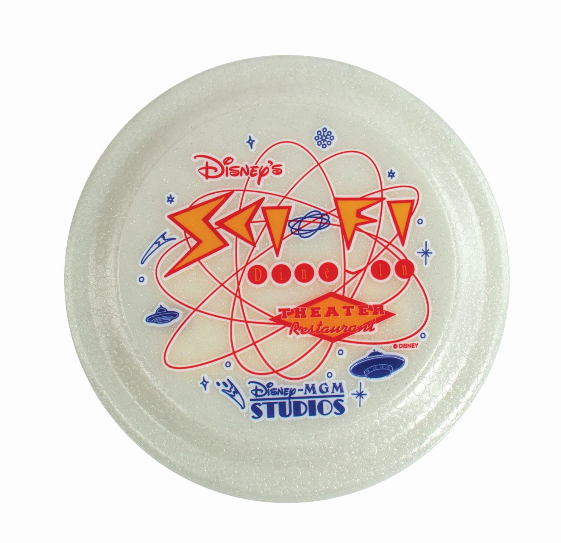 (Disney-MGM, 1990s) A rare souvenir frisbee from the Sci-Fi Dine-In Theater Restaurant. Based on a 1950s drive-in theater, this charming restaurant is just as much of a fan favorite for its atmosphere as it is for its cuisine. This frisbee features the logo for the restaurant on the surface and measures 9" in diameter. The condition is very good with little wear.
