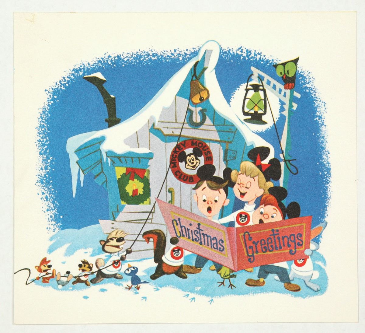(Walt Disney Productions, 1955) Walt Disney Studio Christmas Card for 1955. The calendar on the card is for the 1956 year. Measures 7"x15.25" opened. In fine condition with minimal edge wear.