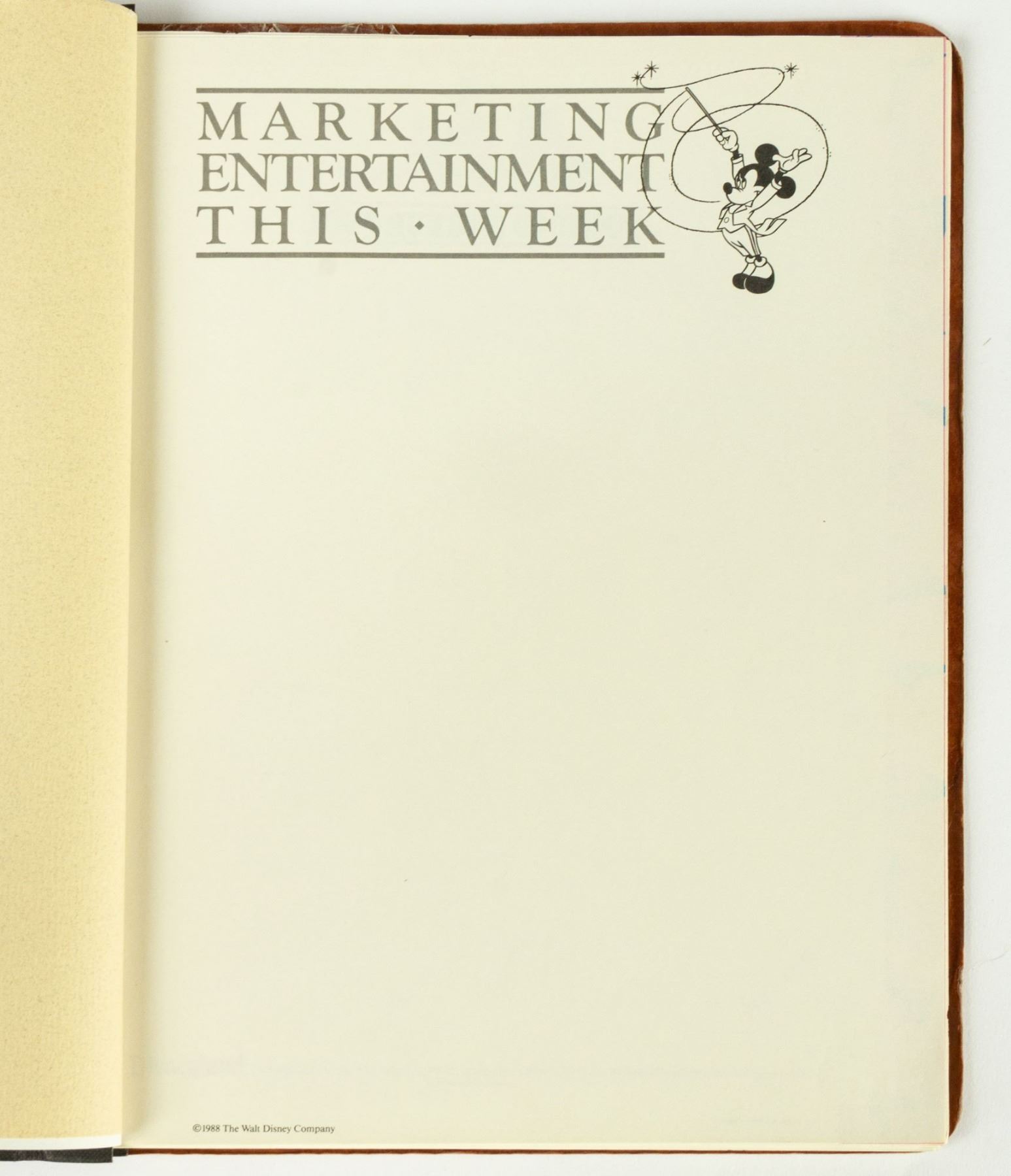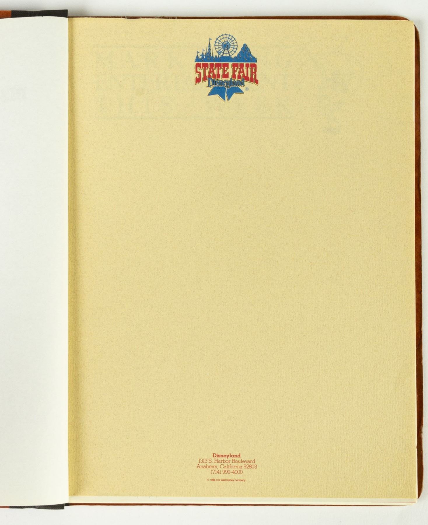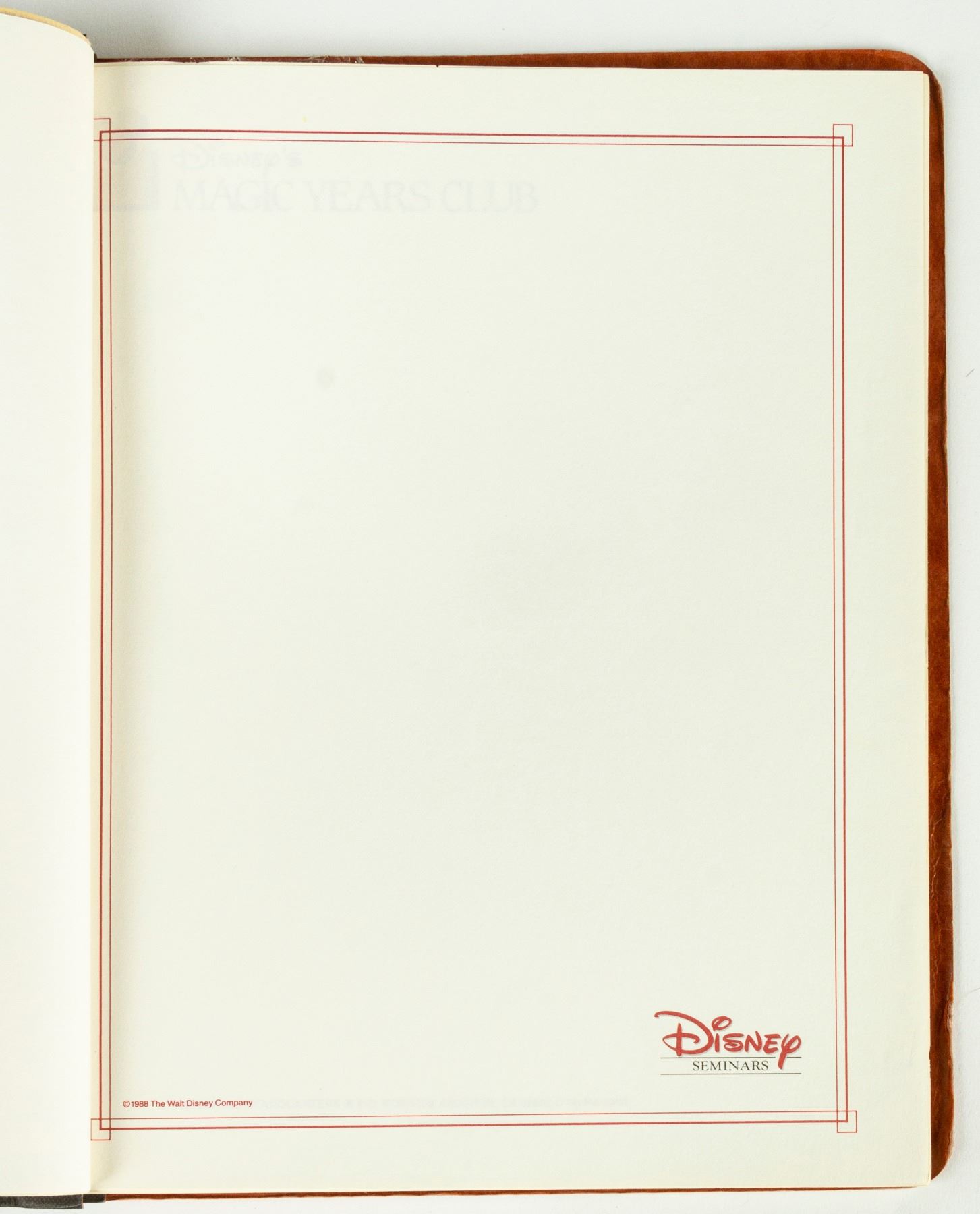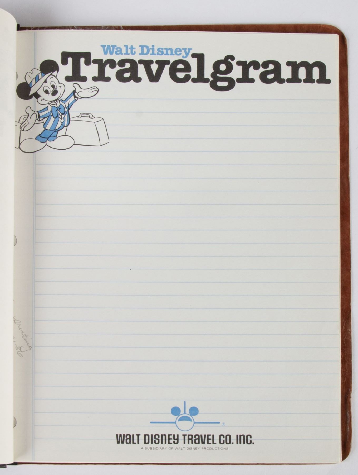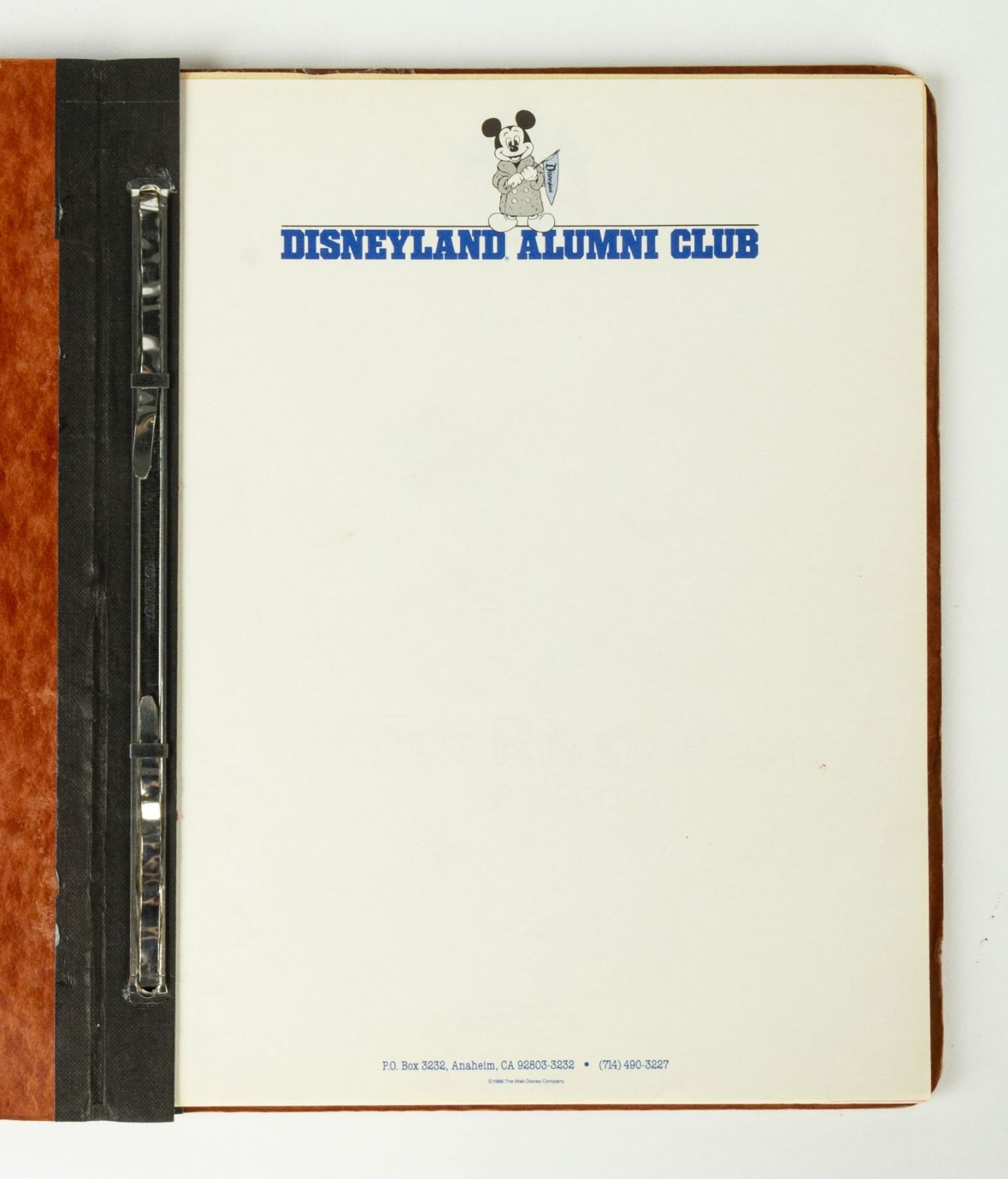 (Walt Disney Studios, 1980s) A large collection of over 50 sheets of letterhead from a variety of Disney projects and departments in the 1980s. This studio reference binder contains hand-written notes in pencil on many of the sheets that primarily describe the dates and use of the sheets. The letterhead is for such events and departments as Blast to the Past, Disneyland Alumni Club, Walt Disney Productions, Magic Kingdom Club, Big Thunder Cookout, Tokyo Disneyland, and many others. The binder cover is titled Miscellaneous Letterhead, and measures 11.5"x9". The condition is very good overall with minor wear.
