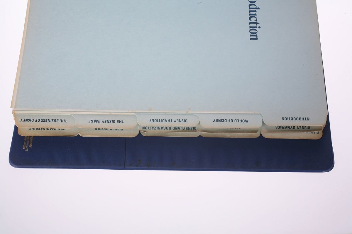 (Disneyland, 1977) Manual for the "Disney Way I" seminar designed for select members of Disneyland Management staff. The seminar was an overview and history of Disney, and is packed with facinating information and statistics. Topics include"Disney Traditions", "The World of Disney", and "WED Imagineering". Measures 11.5"x10.25". 134 pages. In very good condition with minor wear.